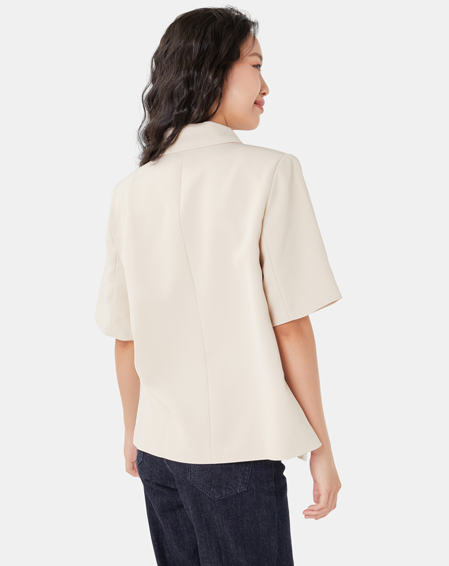 - Áo blazer tay ngắn form rộng thanh lịch, nữ tính và hiện đại