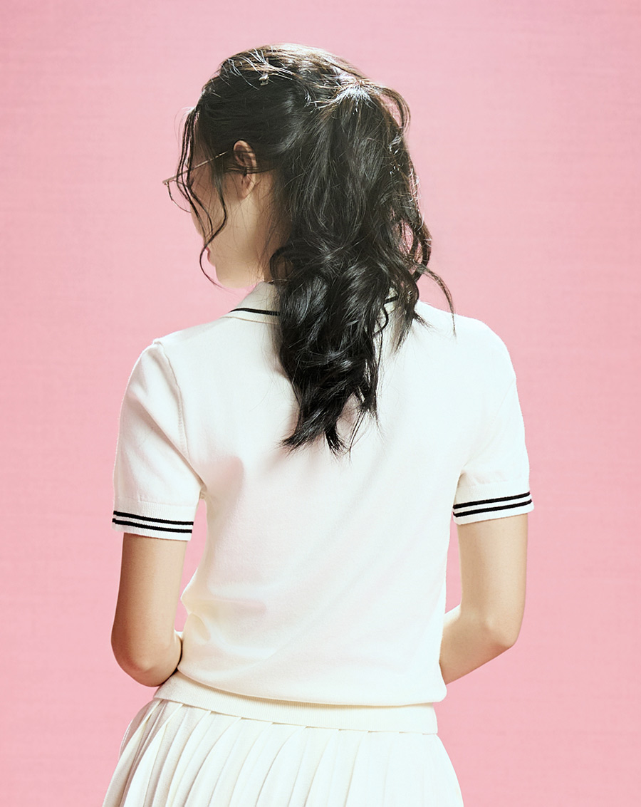 Áo dệt kim cổ polo thêu chữ