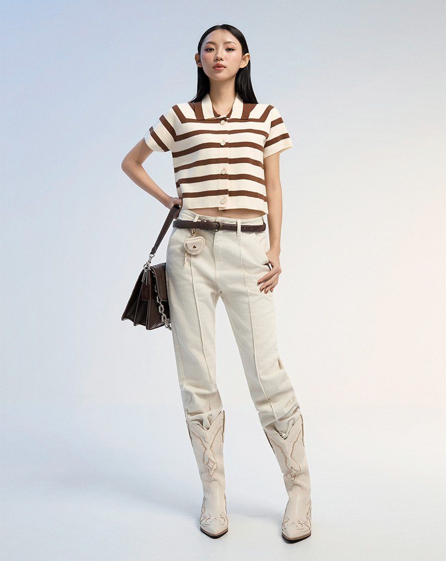 - Áo dệt sọc form sơmi boxy tay ngắn trẻ trung, năng động