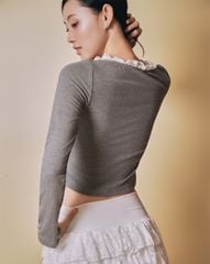 - Áo thun khóa kéo phối cổ ren nữ tính