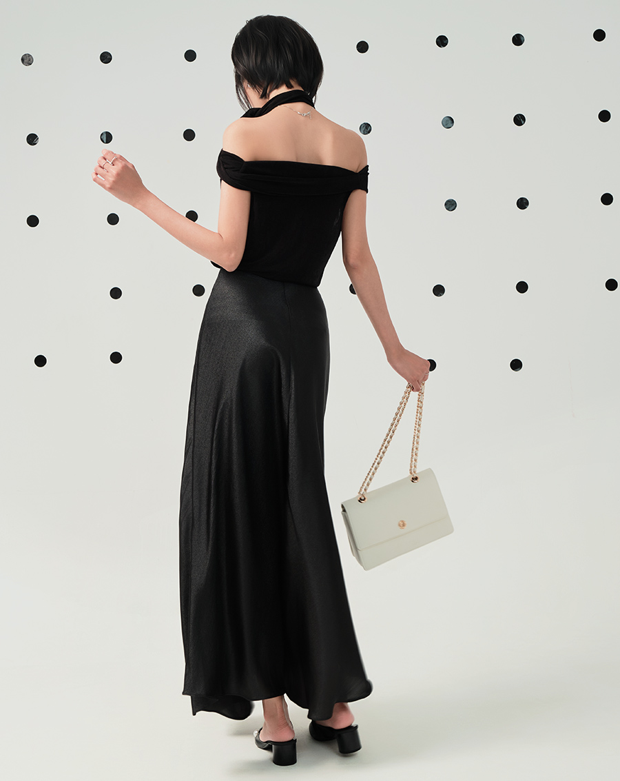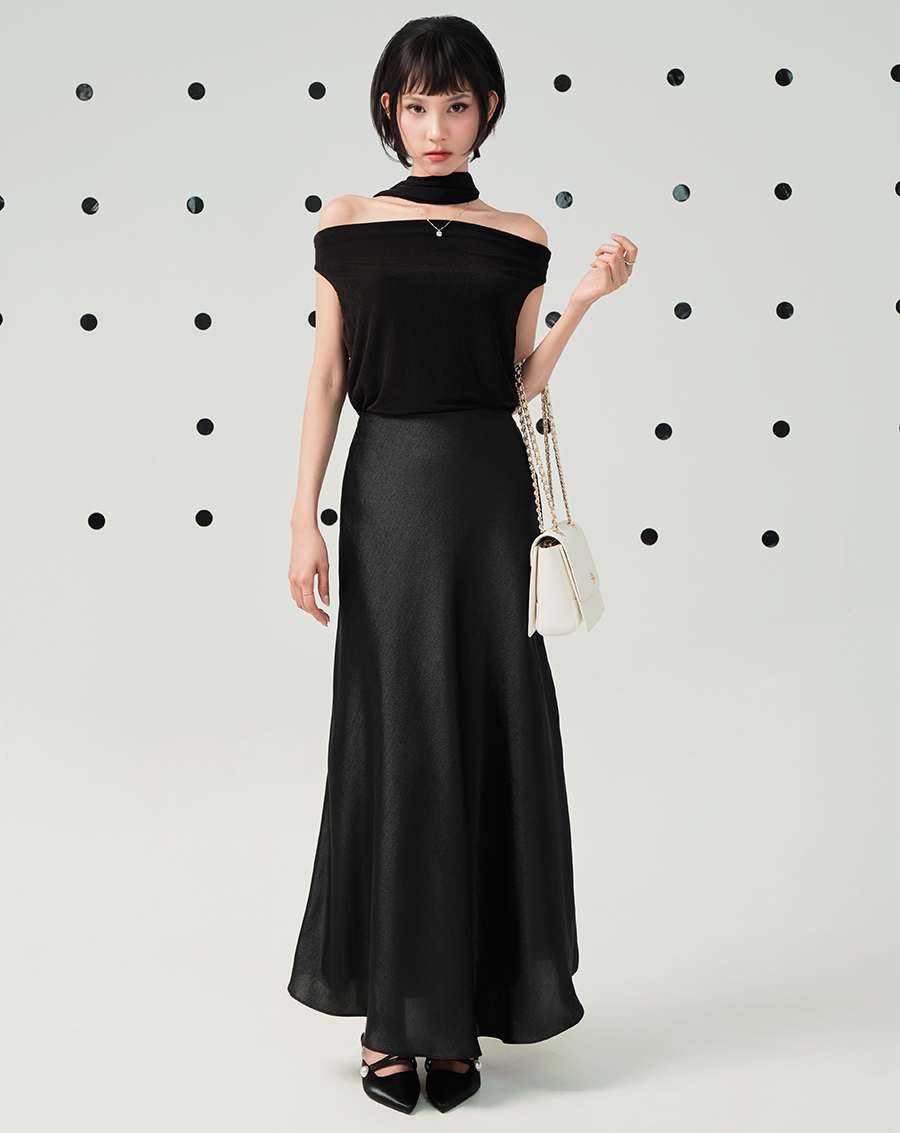 - Chân váy A midi lưng liền sang trọng, cá tính