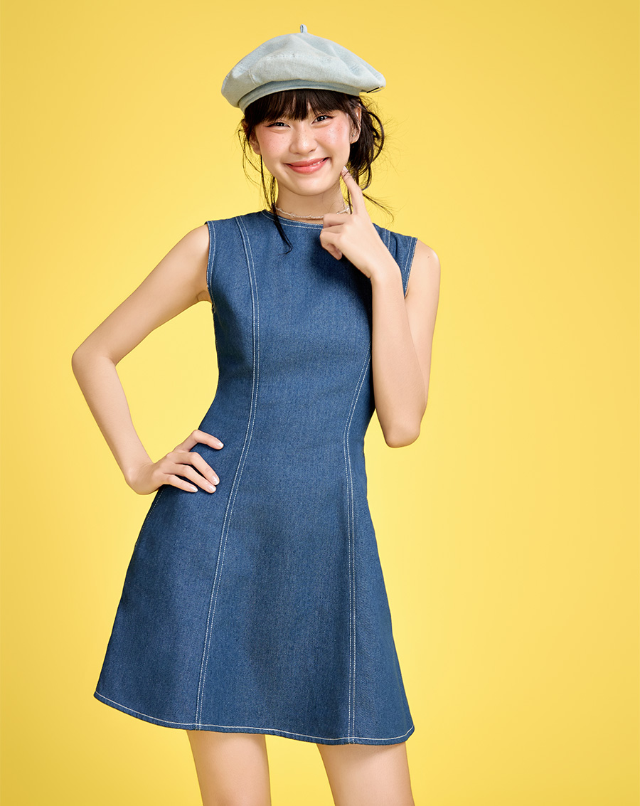 - Đầm basic mini vải denim trẻ trung, năng động