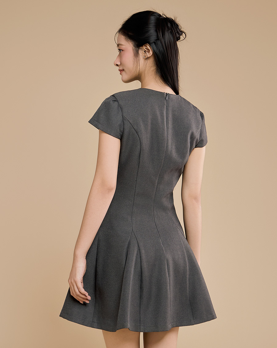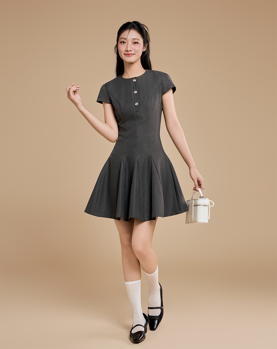 - Đầm godet mini phối nẹp nút trẻ trung, năng động