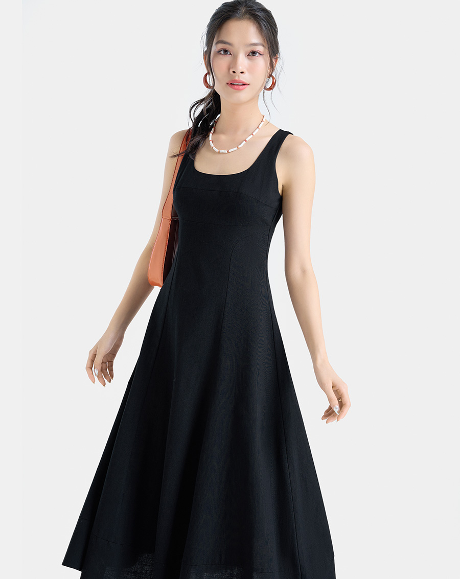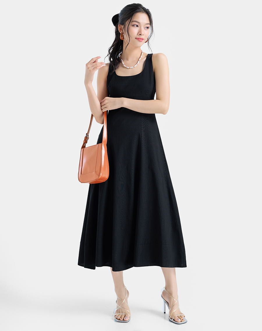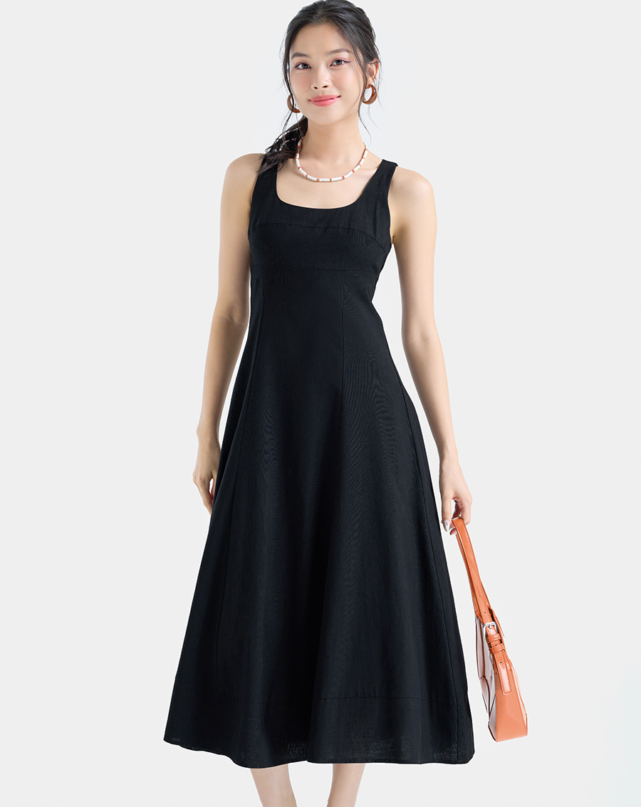 - Đầm midi sát nách rã ben vô cùng nữ tính