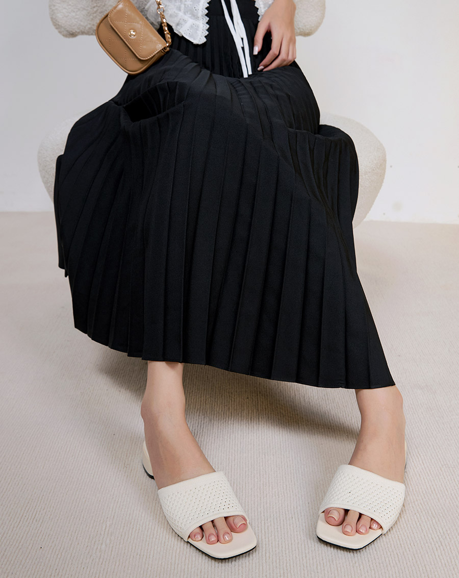 Giày mũi vuông, phối quai họa tiết dập nổi tạo nên sự uyển chuyển trong bước đi