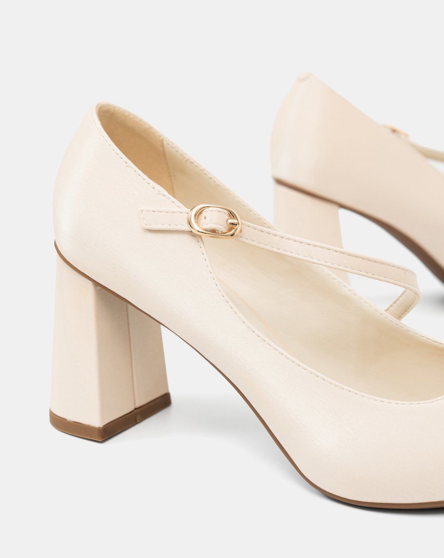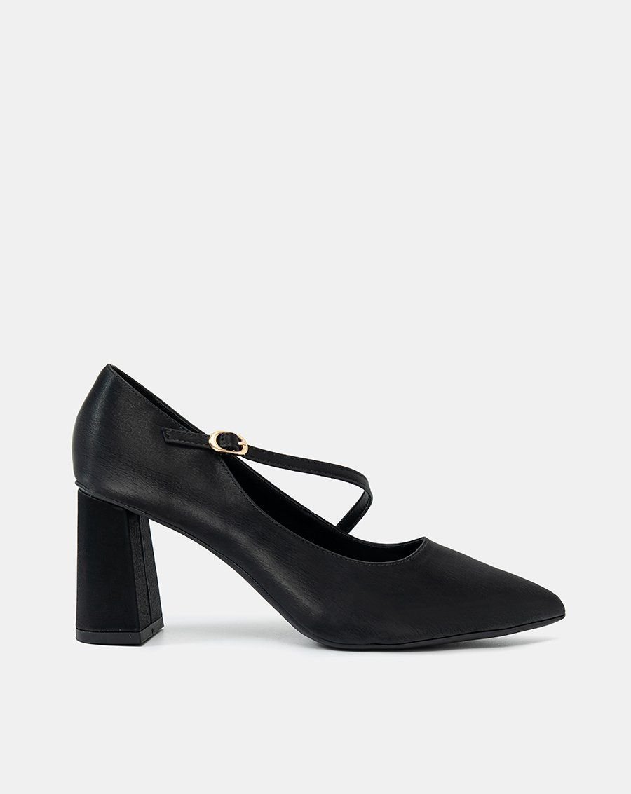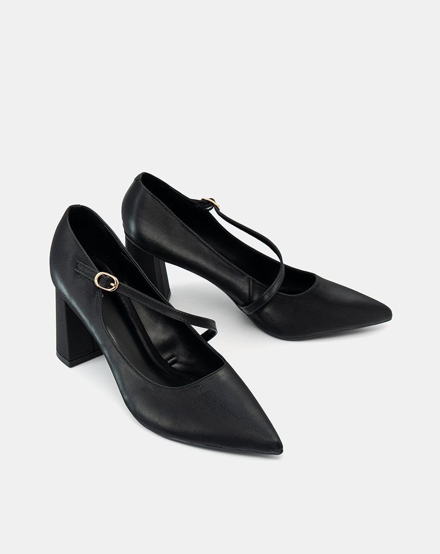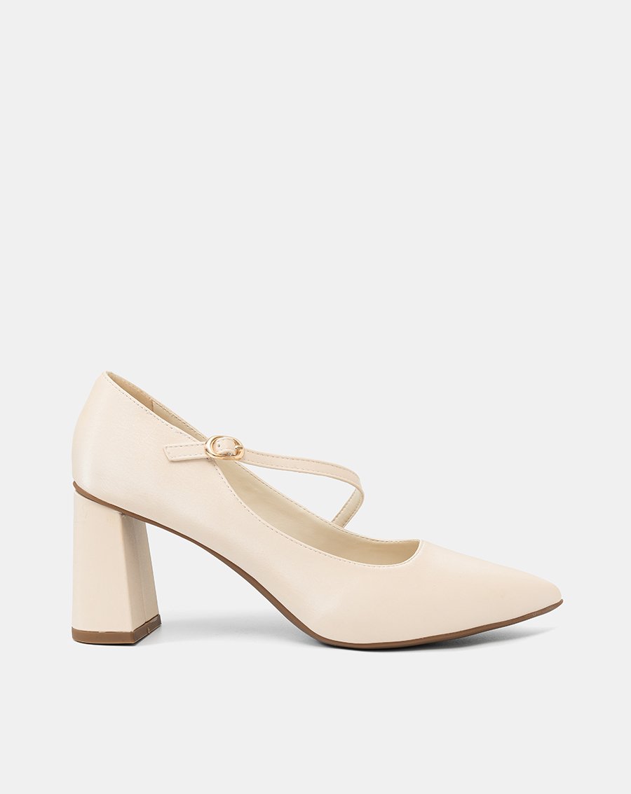 Giày Cao Gót Pump Gót Trụ Quai Mary Jane Xéo