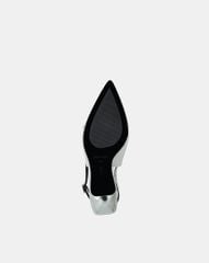 Quai hậu phối kim loại tạo điểm nhấn, gót nhọn thanh cao 9cm, có phần lót chống trơn trượt giúp bạn dễ dàng di chuyển