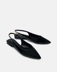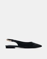 Thiết kế mũi nhọn đơn giản, quai slingback phối dây xích mang lại nét nữ tính uyển chuyển trên từng bước đi