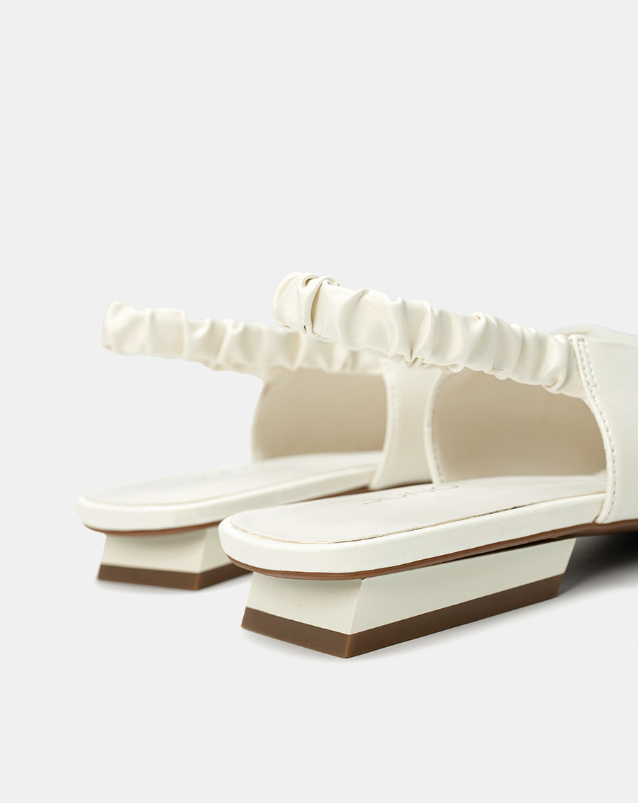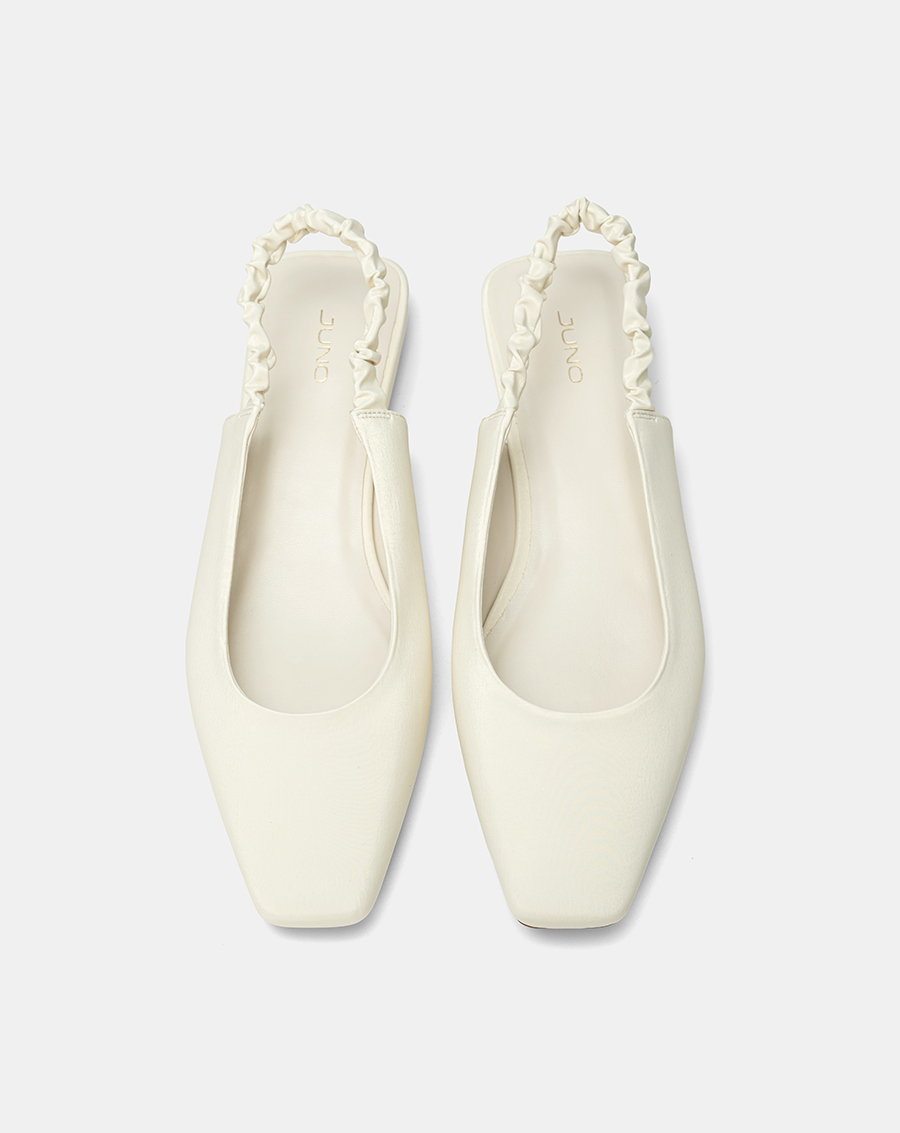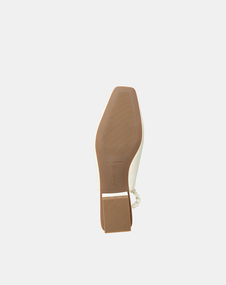Giày thiết kế mũi vuông, quai hậu nhún mang lại nét nhẹ nhàng và nữ tính