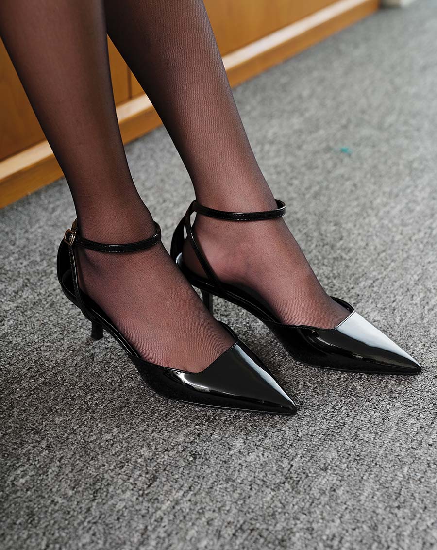Giày thiết kế mũi nhọn, quai cổ chân cách điệu mang lại nét đẹp uyển chuyển khi diện