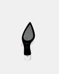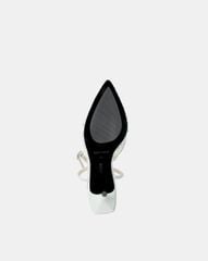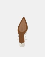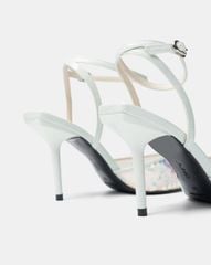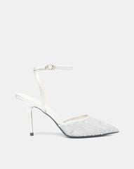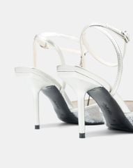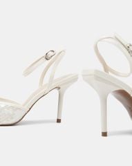 Quai hậu gài tiện dụng, gót nhọn thanh cao 9cm, có phần lót chống trơn trượt giúp bạn dễ dàng di chuyển