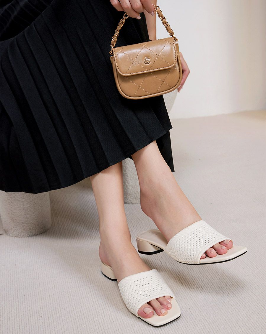 Gót trụ 5cm, dưới đế có rãnh chống trượt cho bước chân thoải mái, tự tin