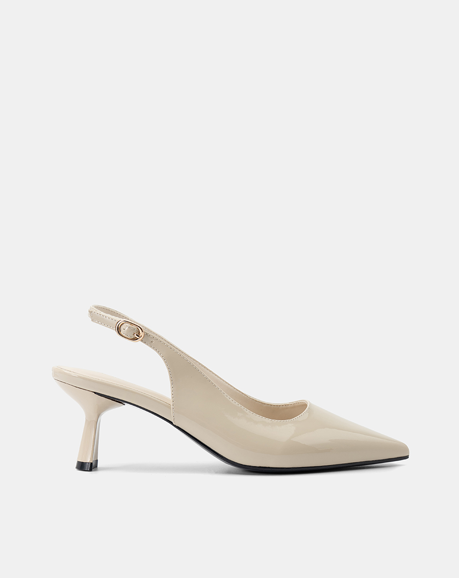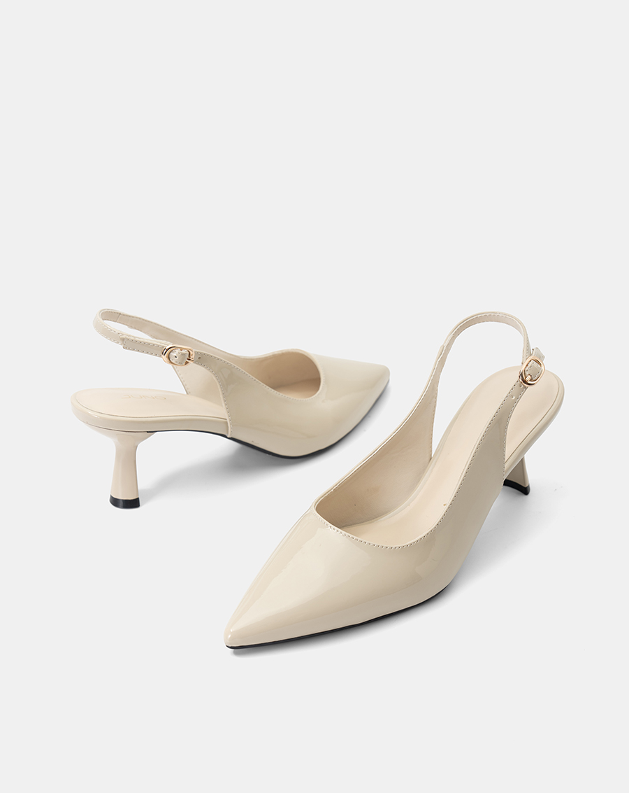 Thiết kế mũi nhọn tôn dáng, phối quai slingback ôm gót giúp cố định chắc chắn.