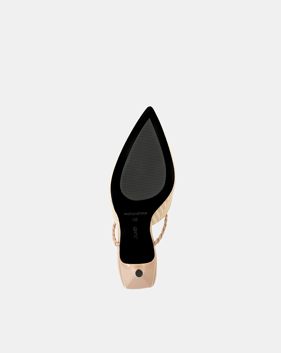 Thiết kế mũi nhọn kết hợp quai thắt bính tinh tế tạo điểm nhấn nổi bật.