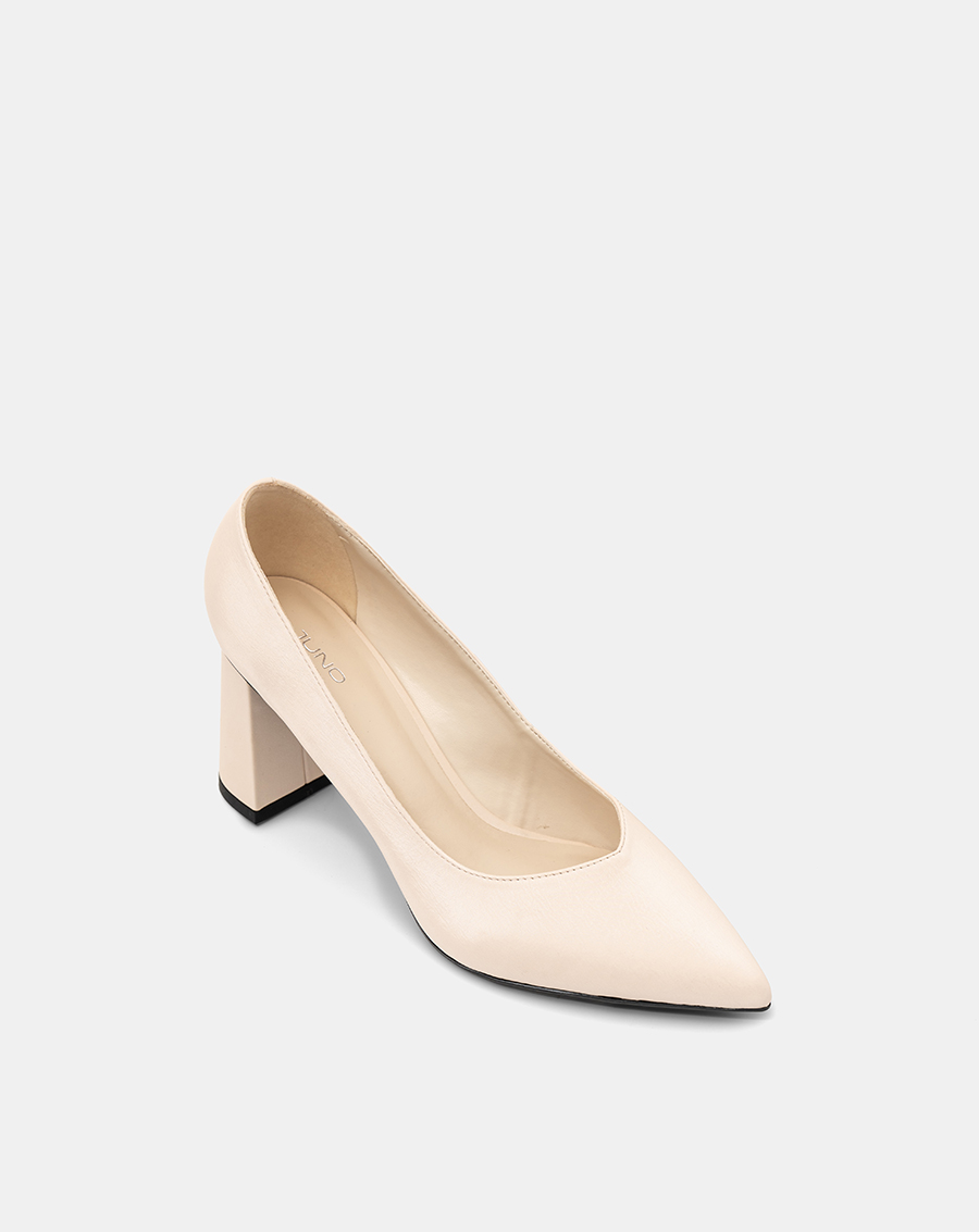 Form giày cơ bản mũi nhọn gót trụ mang lại nét nữ tính và tự tin khi diện
