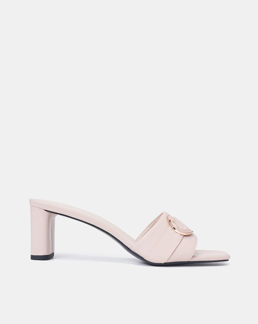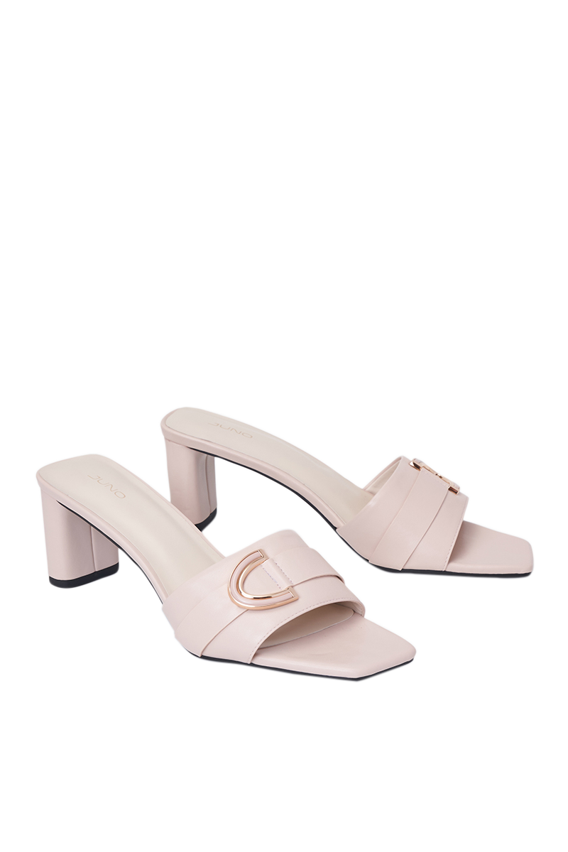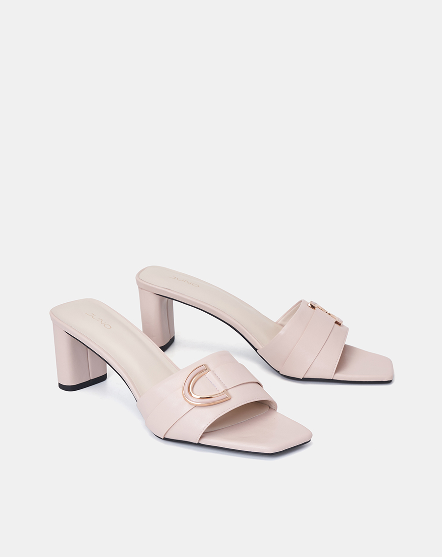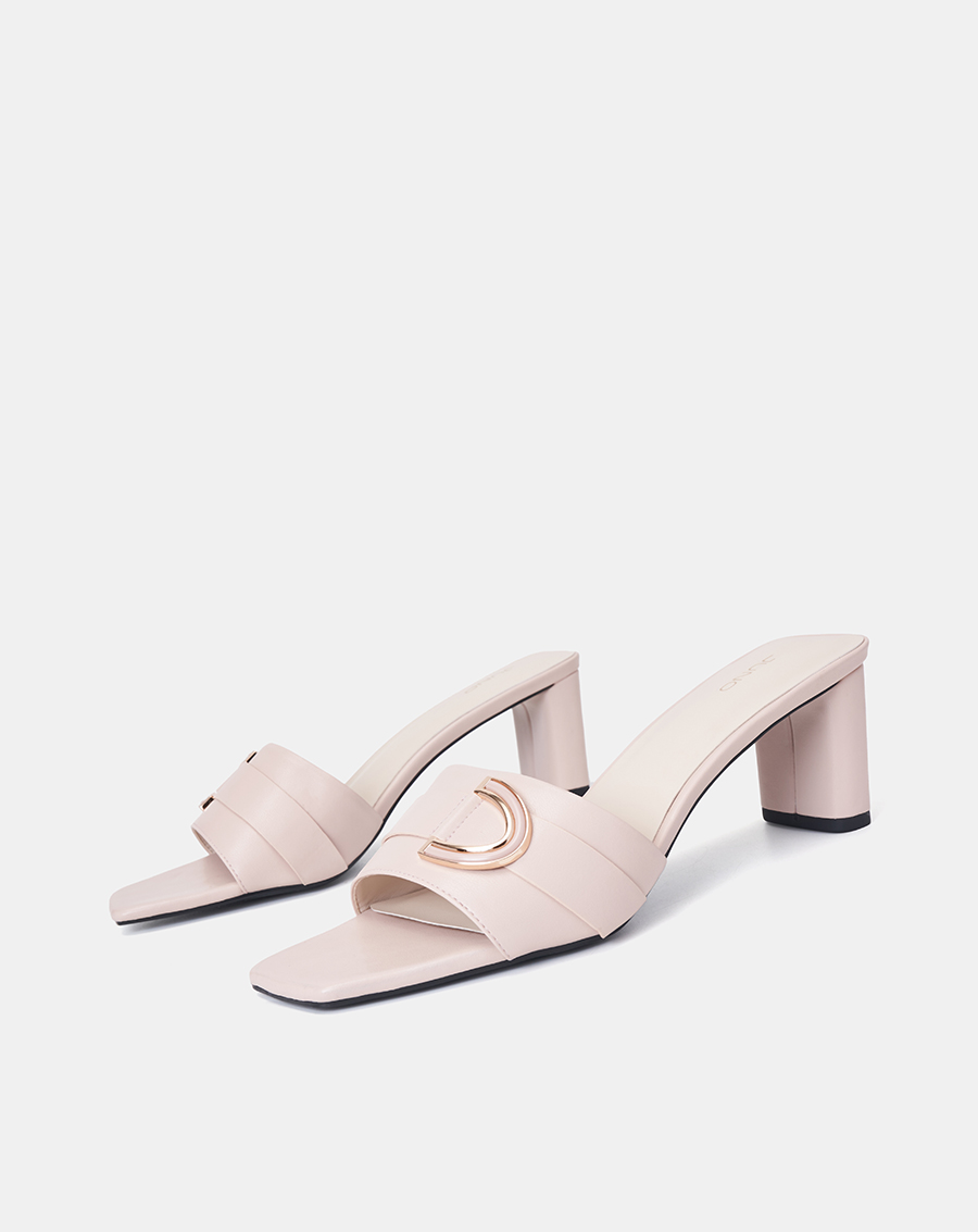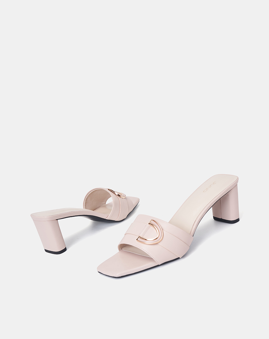 Giày mules hở mũi phối khoá trang trí thiết kế tối giản, thanh lịch
