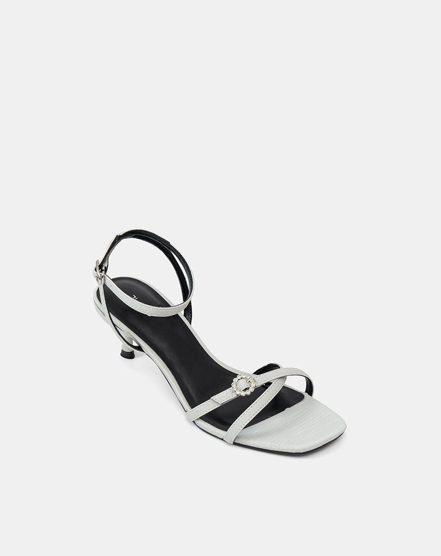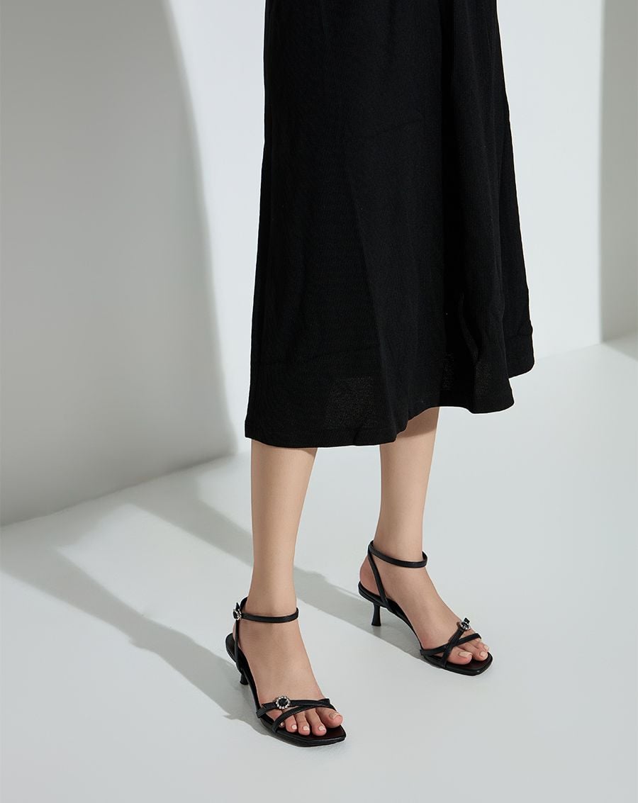Giày Sandal Cao Gót Quai Chéo Buckle Đính Đá