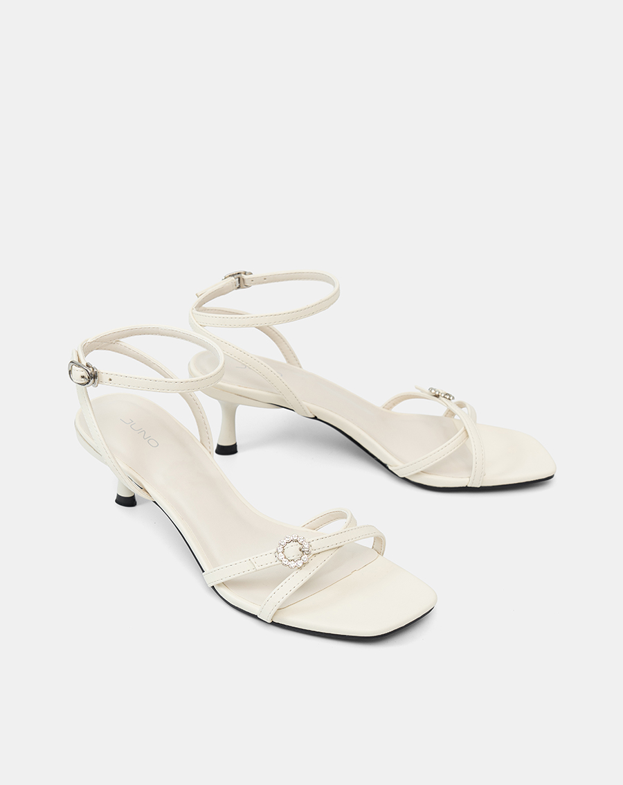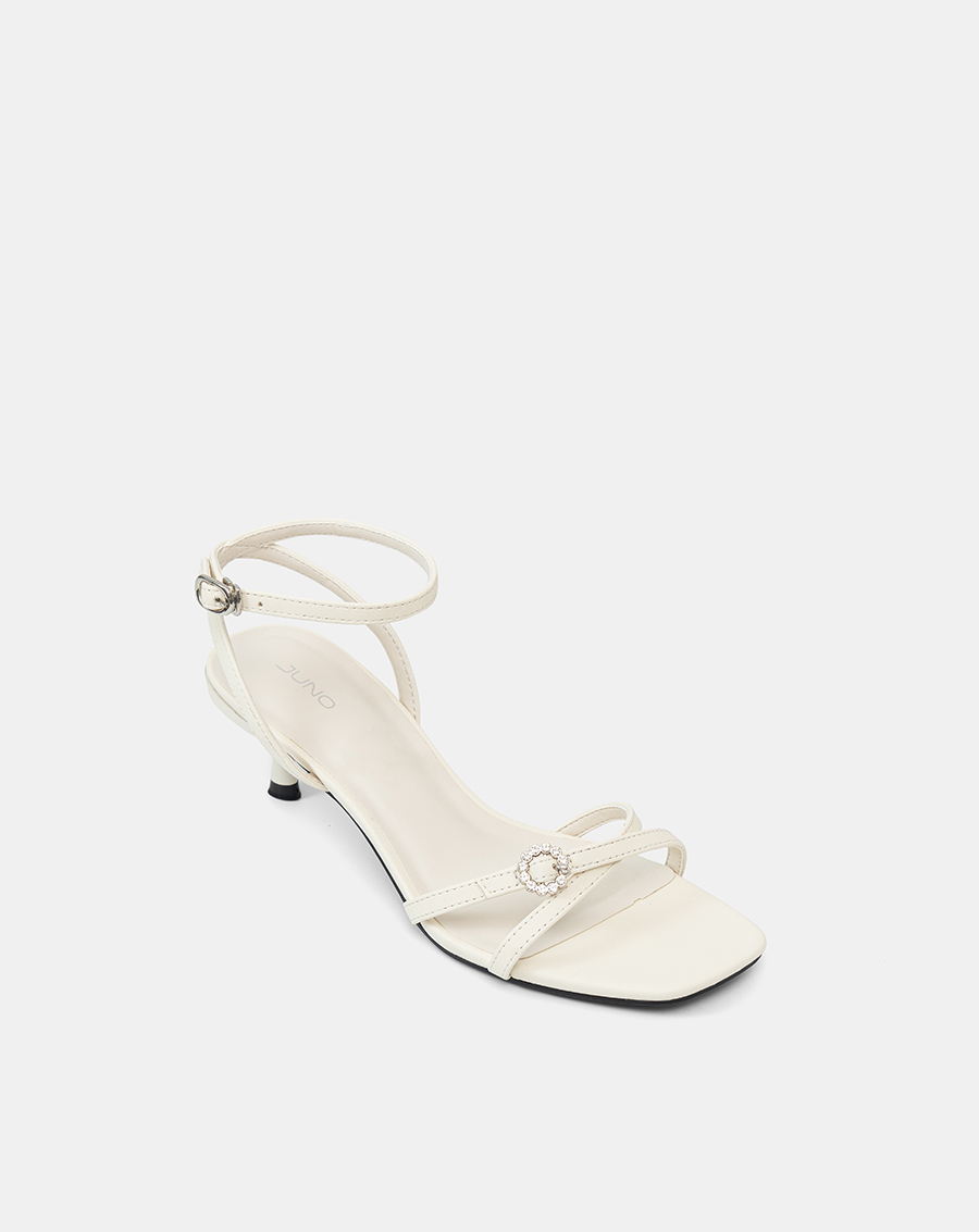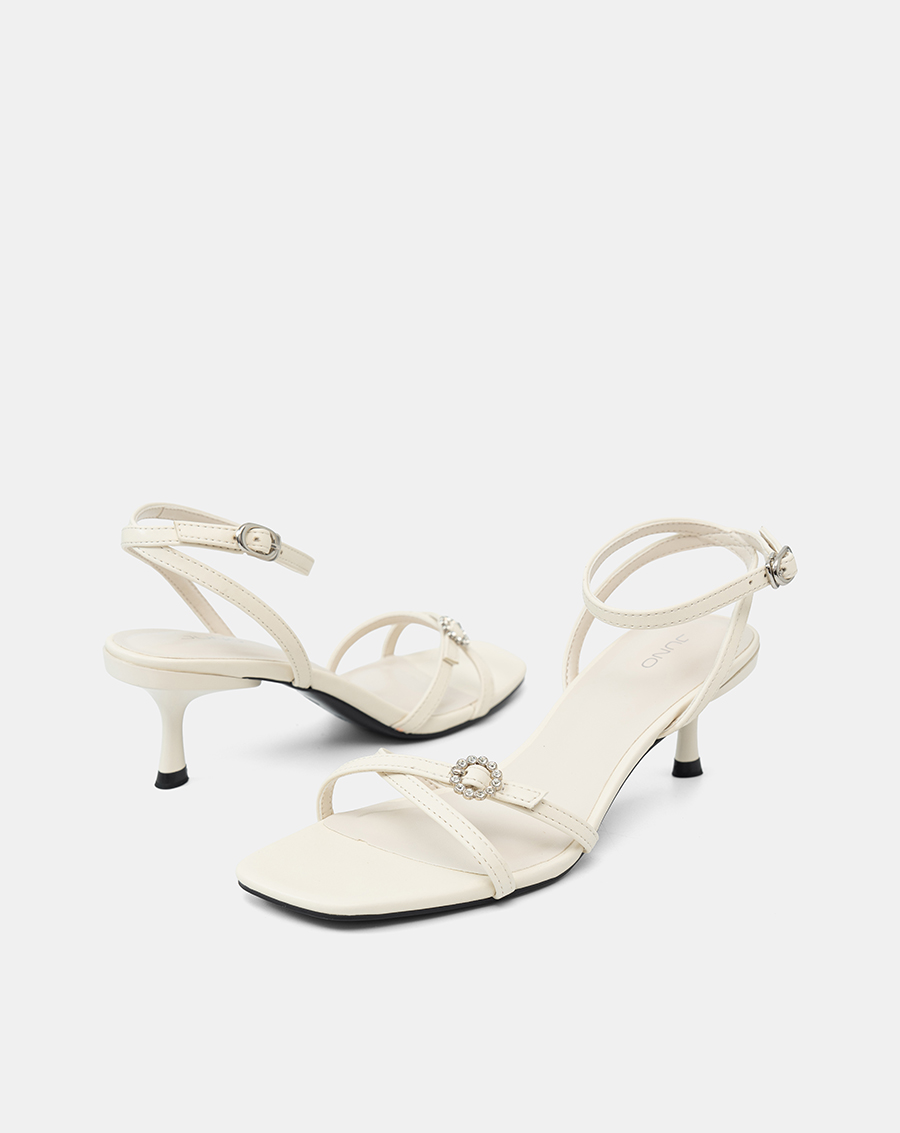 Giày Sandal Cao Gót Quai Chéo Buckle Đính Đá