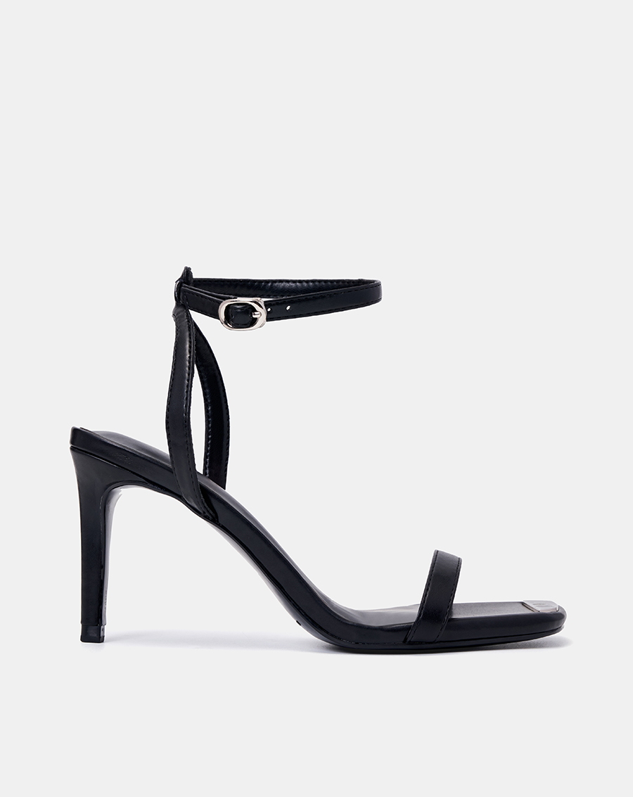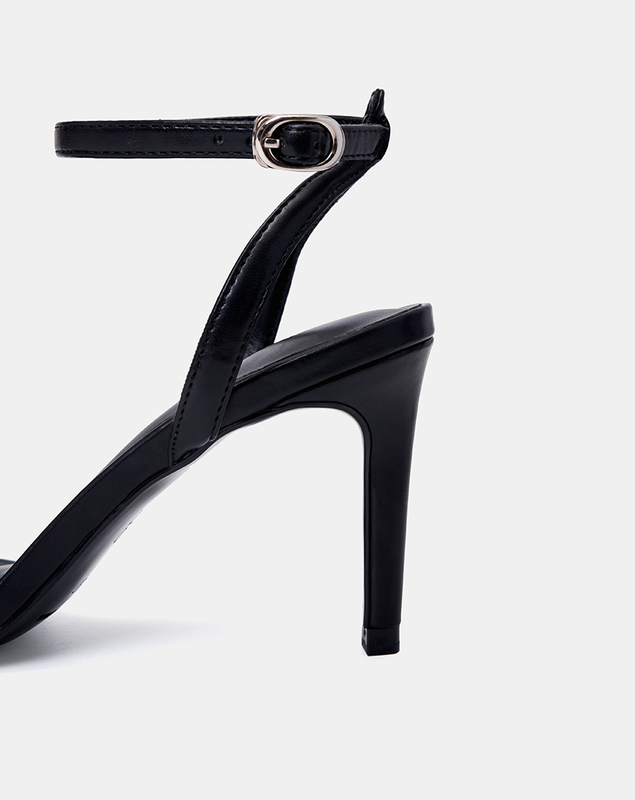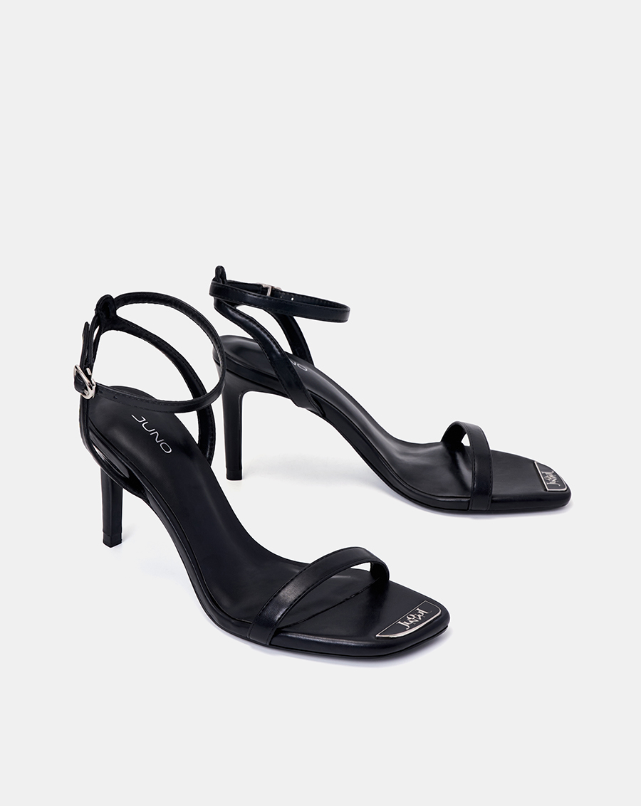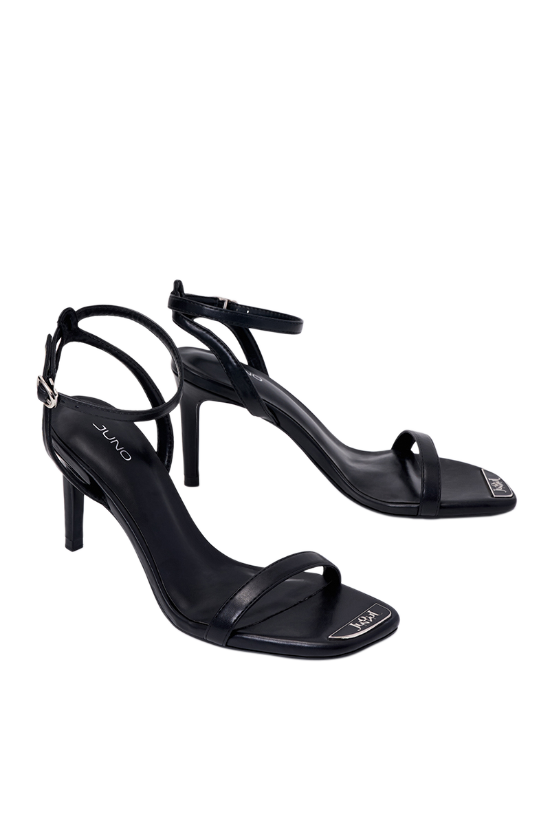 Giày sandal gót thanh phối khoá trang trí Jn thiết kế tối giản, điểm nhấn logo phần mũi giày