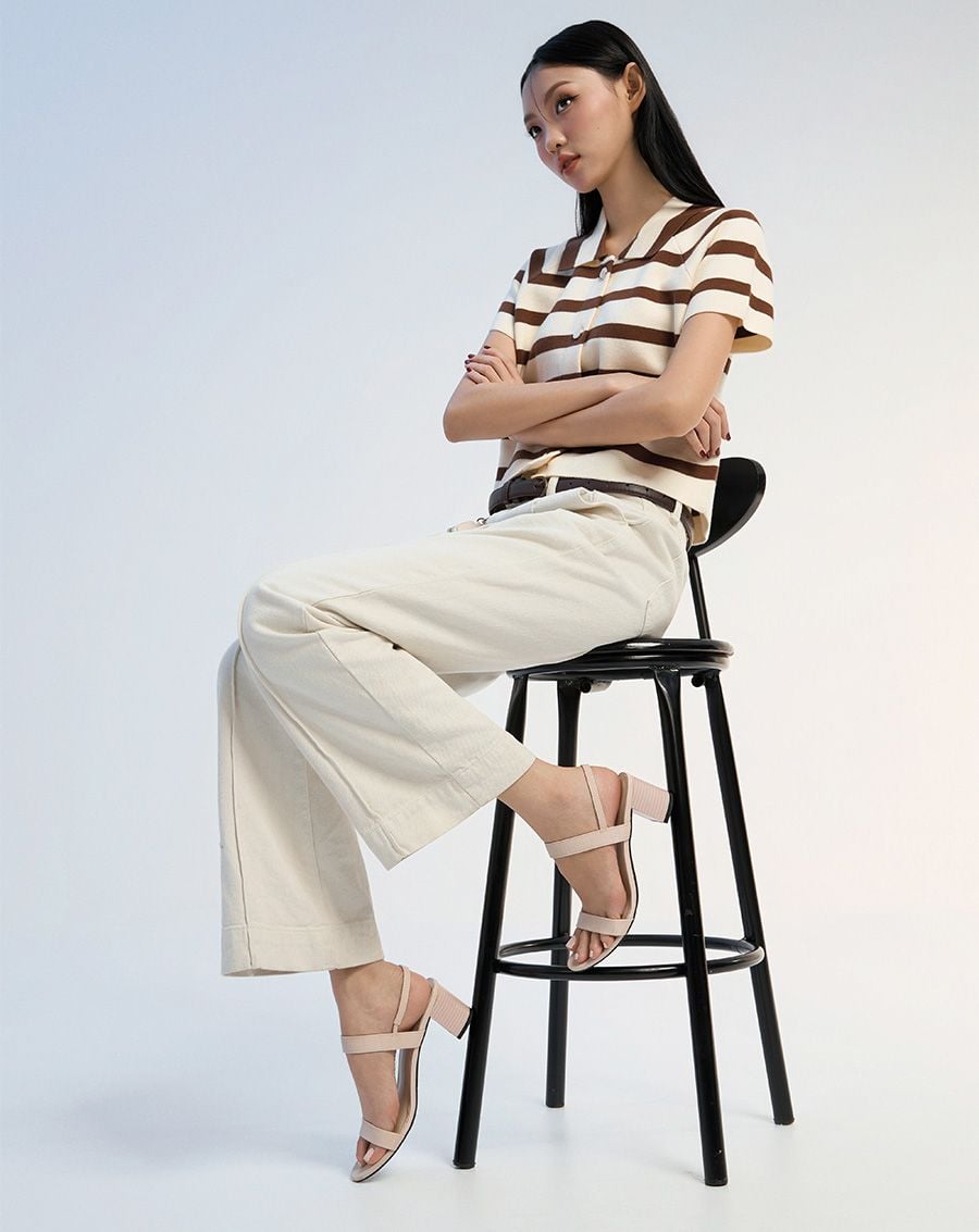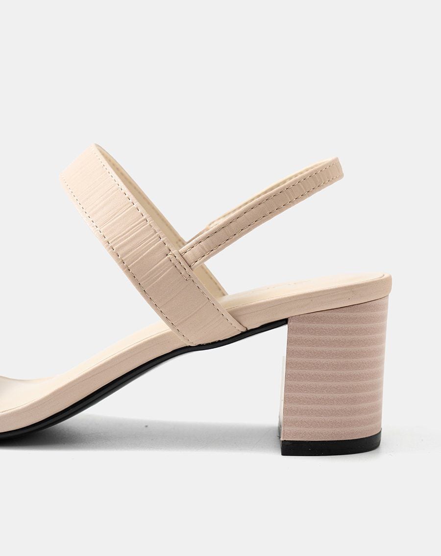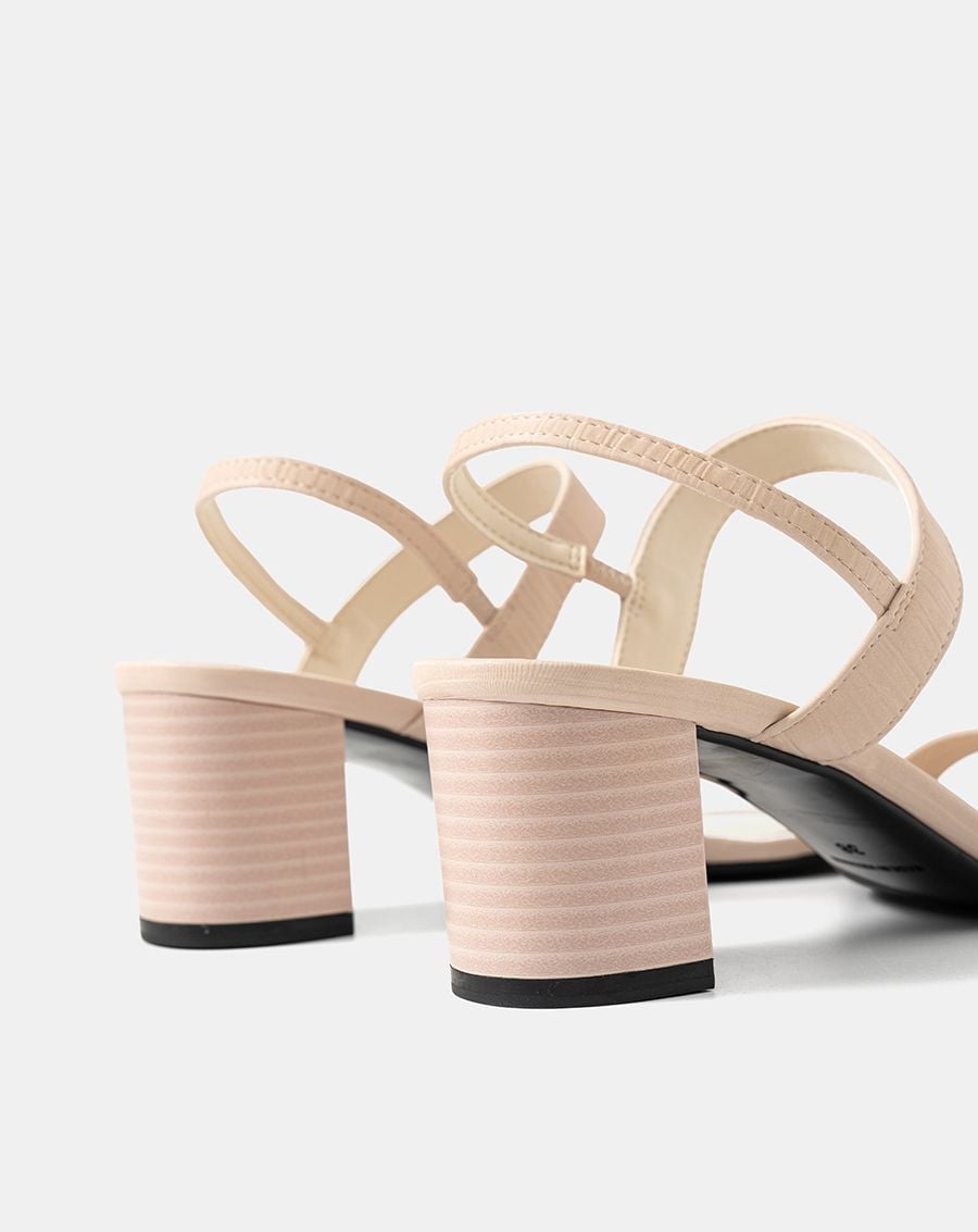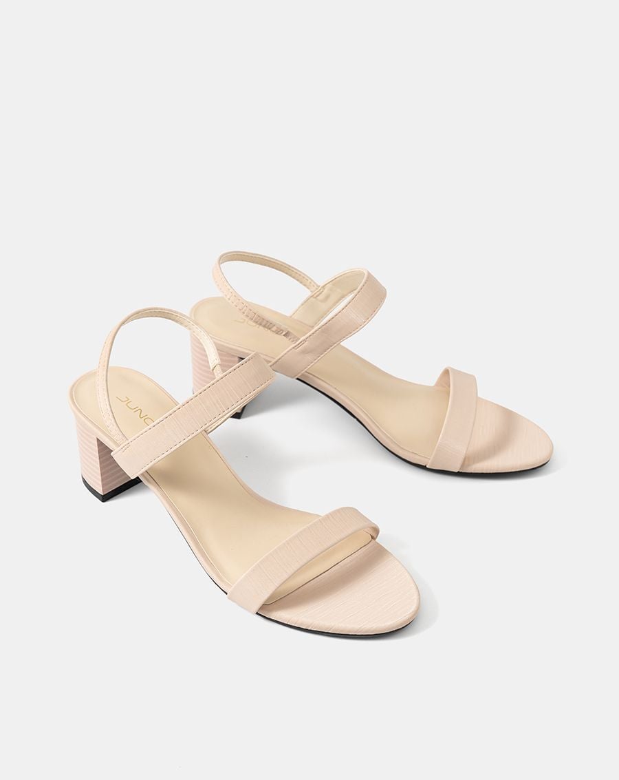 Giày mũi tròn, phối quai mảnh nhỏ, phần quai hậu có thun giãn thoải mái tạo nên sự uyển chuyển trong bước đi