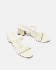 Giày mũi tròn, phối quai mảnh thắt nút cách điệu tạo nên sự uyển chuyển trong bước đi