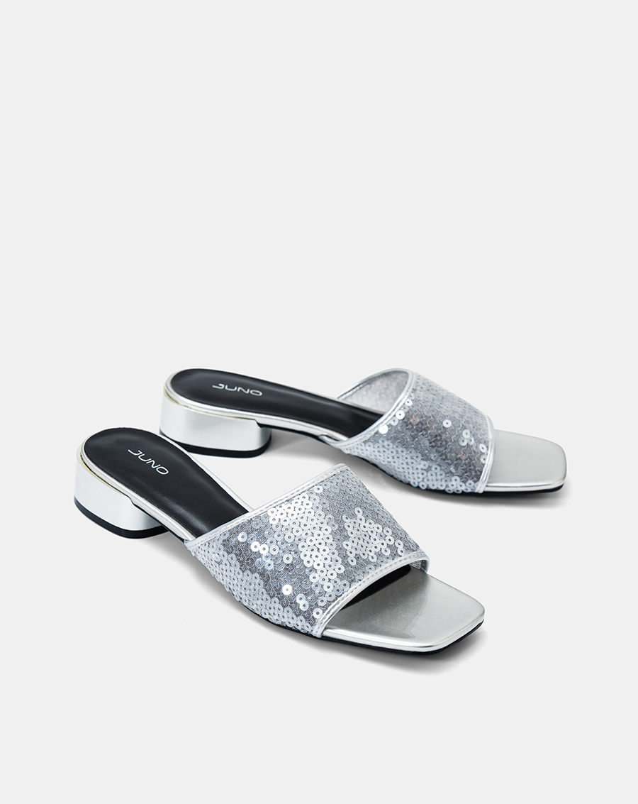 Giày mũi vuông, quai ngang đính sequin nổi bật mang lại sự trẻ trung, nữ tính