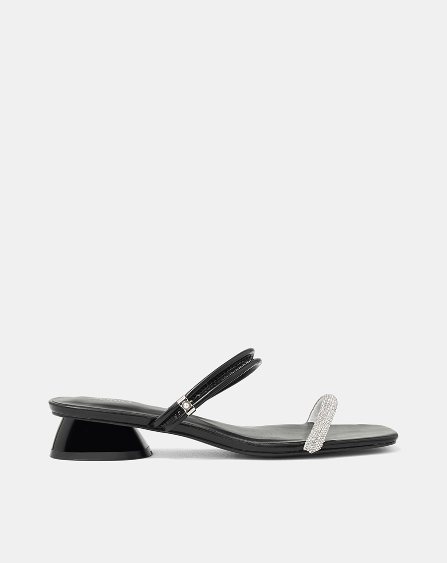 Giày mũi vuông, phối quai mảnh đính đá tạo nên sự uyển chuyển trong bước đi