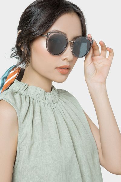 Kính mắt mèo, khung viền nhựa màu trong suốt và gọng kim loại
