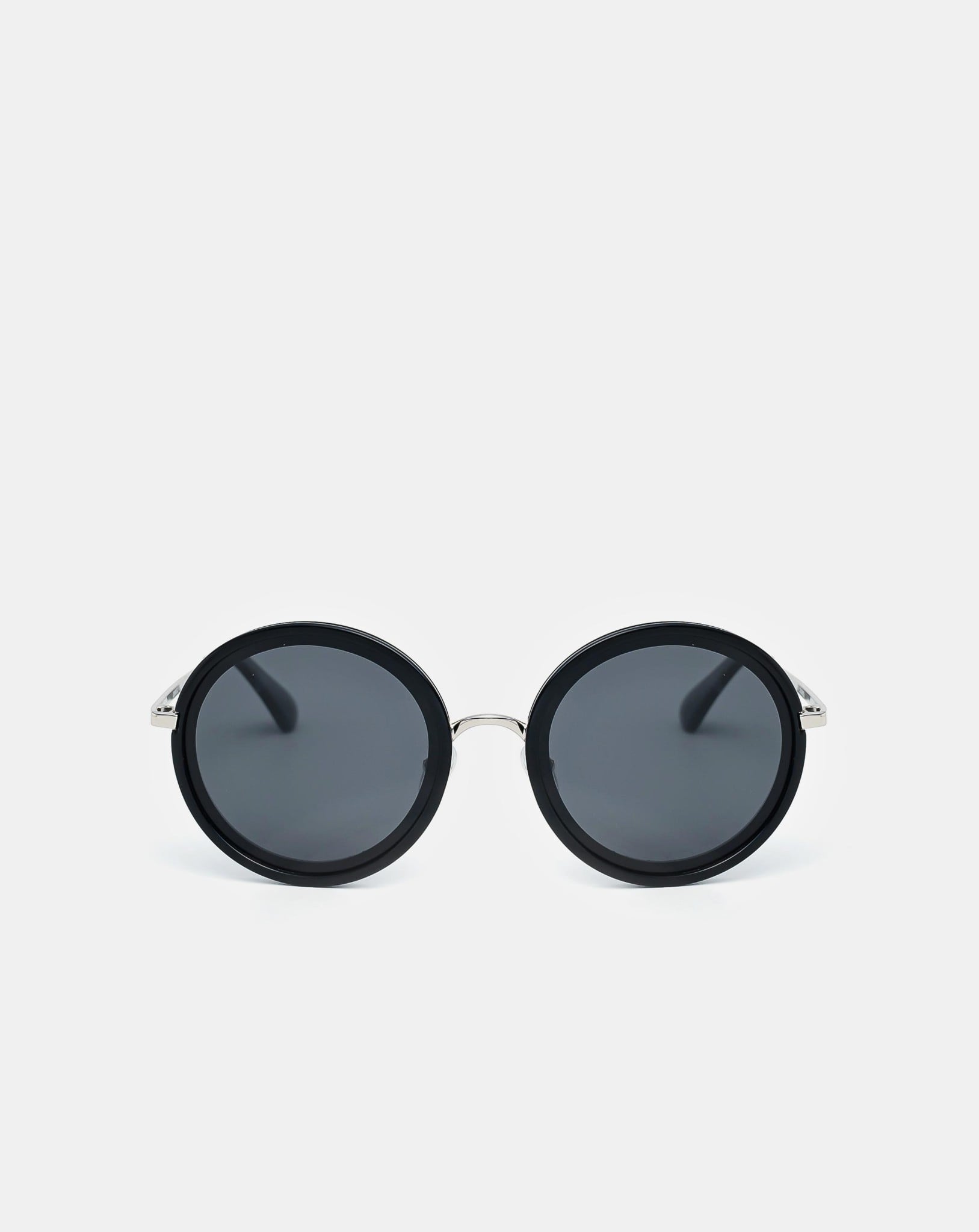 Mắt kính dáng tròn, khung viền nhựa màu trong suốt, gọng kép dày