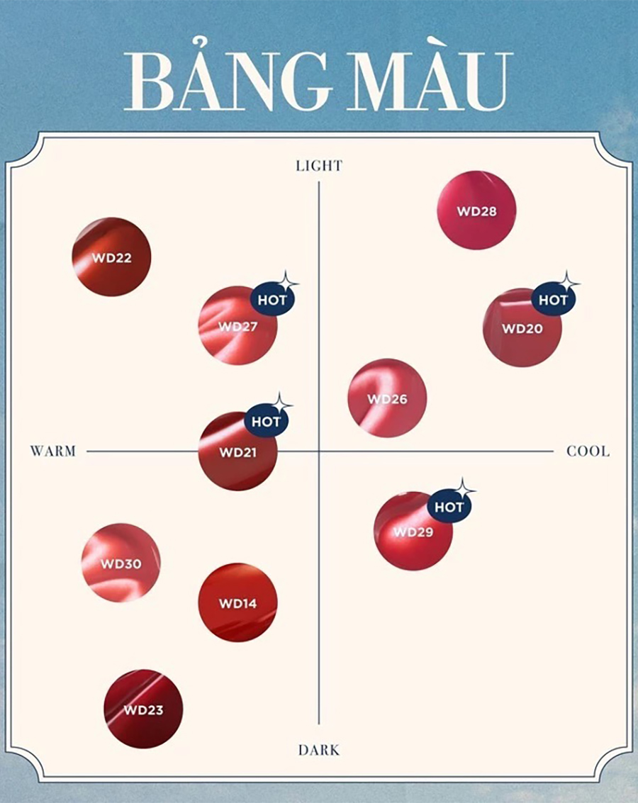 Màu sắc: WD20 Misty Wood-WD22 Hazel Chili-WD19 Hush Rosy-WD21 Burnt Maple-WD15 Liberty Brick-WD11 (Ver.2)