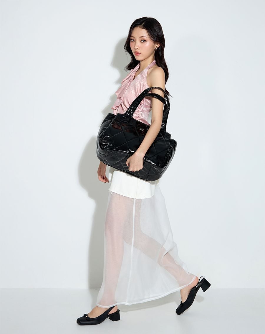 Túi Xách Lớn Tote Bag Chần Bông Hoạ Tiết Quả Trám hiện đại