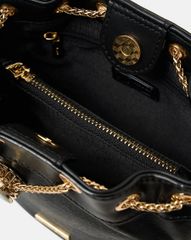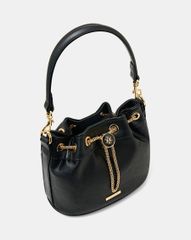 Kiểu dáng túi mới lạ với phần miệng túi có dây rút kim loại phối khóa logo tạo điểm nhấn