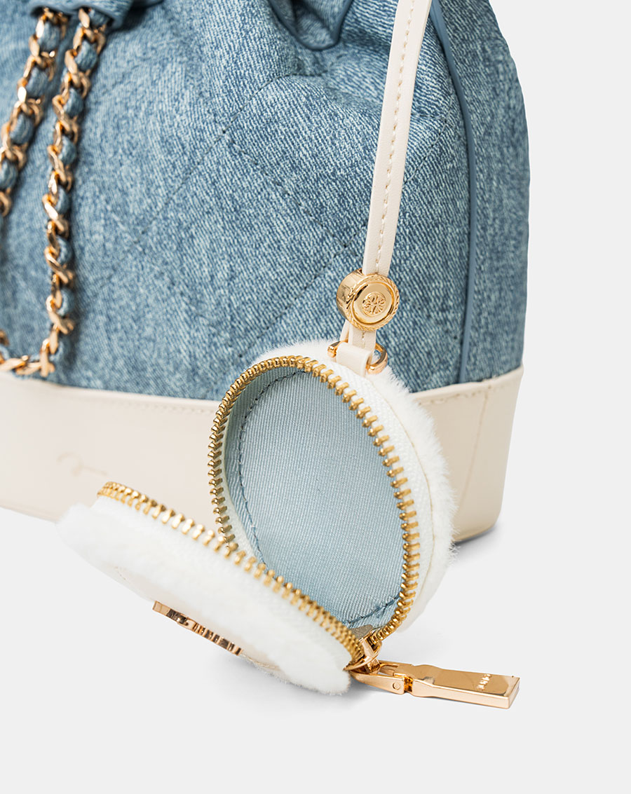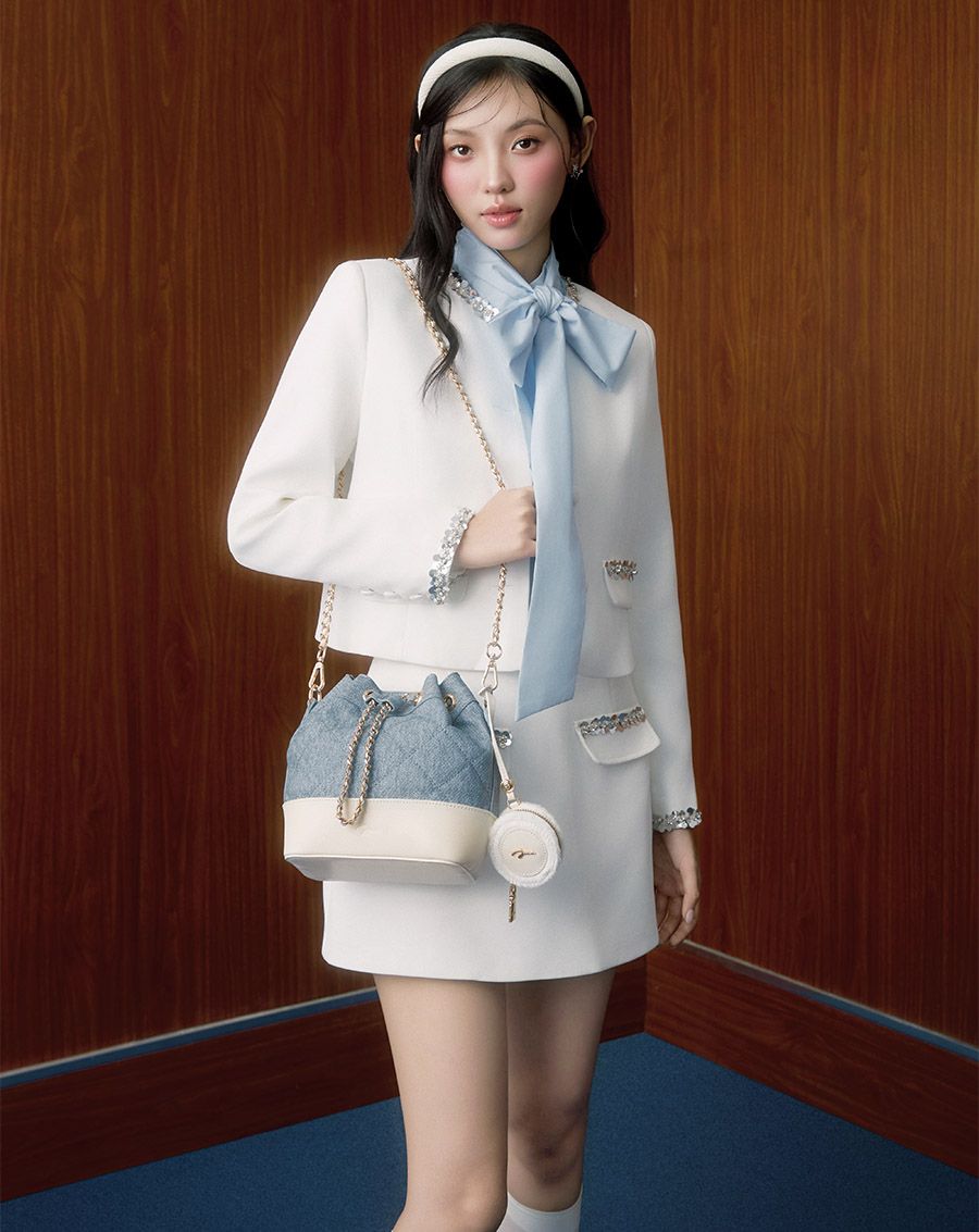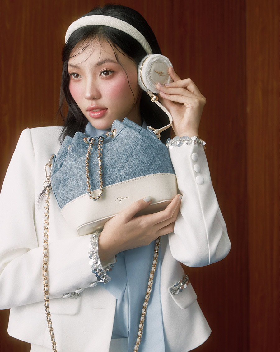Túi được thiết kế miệng rút mới lạ, phối charm là túi nhỏ đẹp mắt và tiện dụng