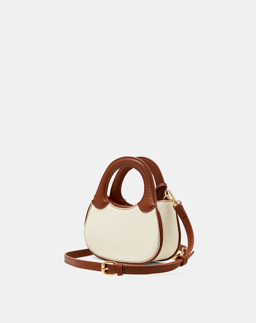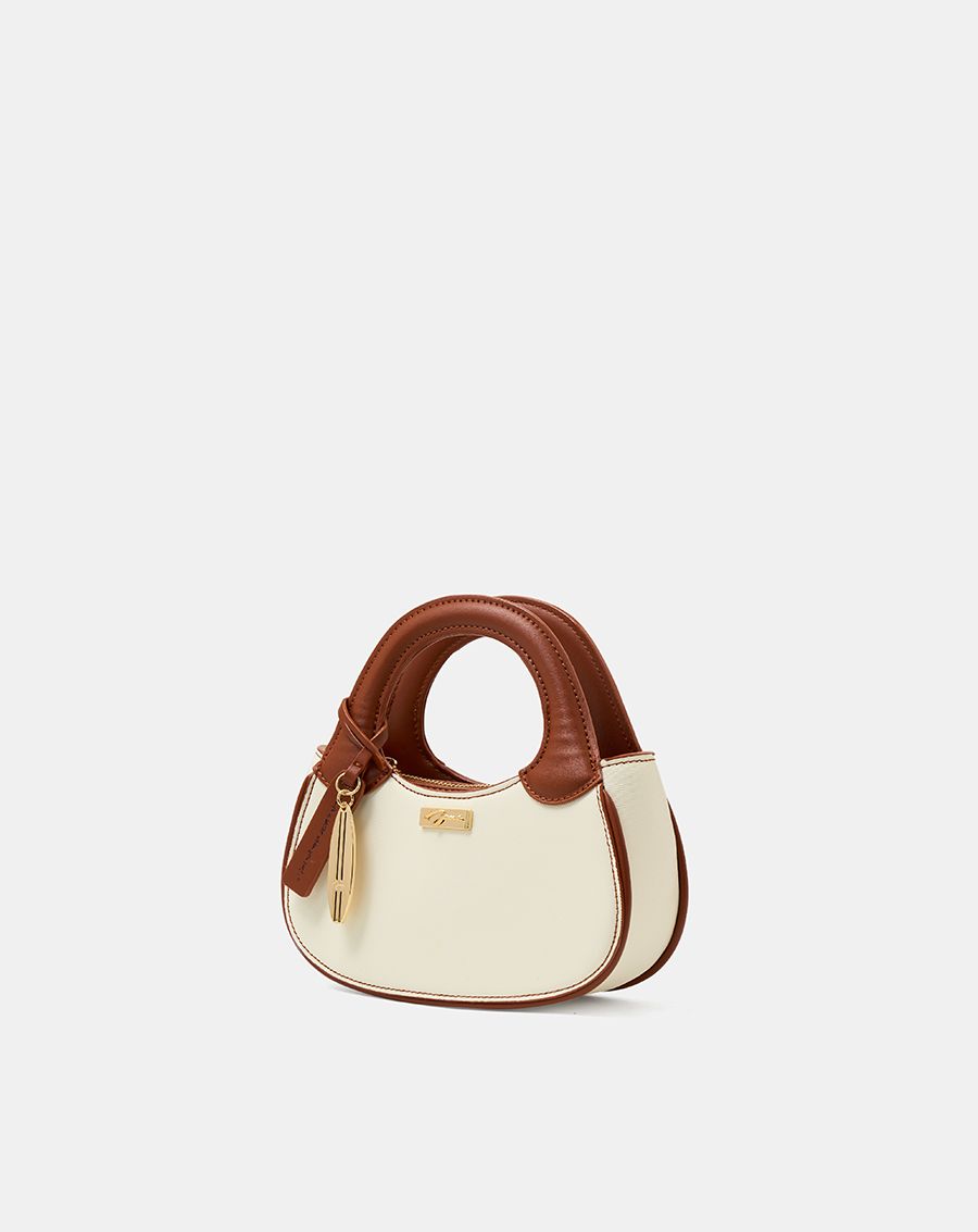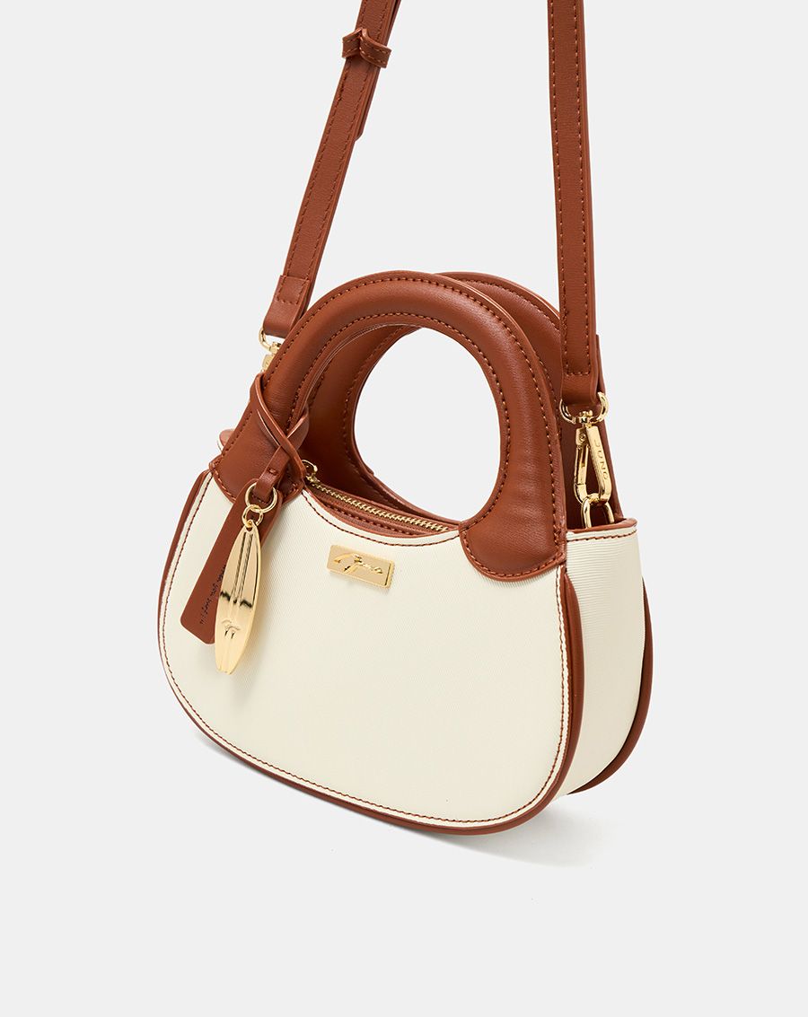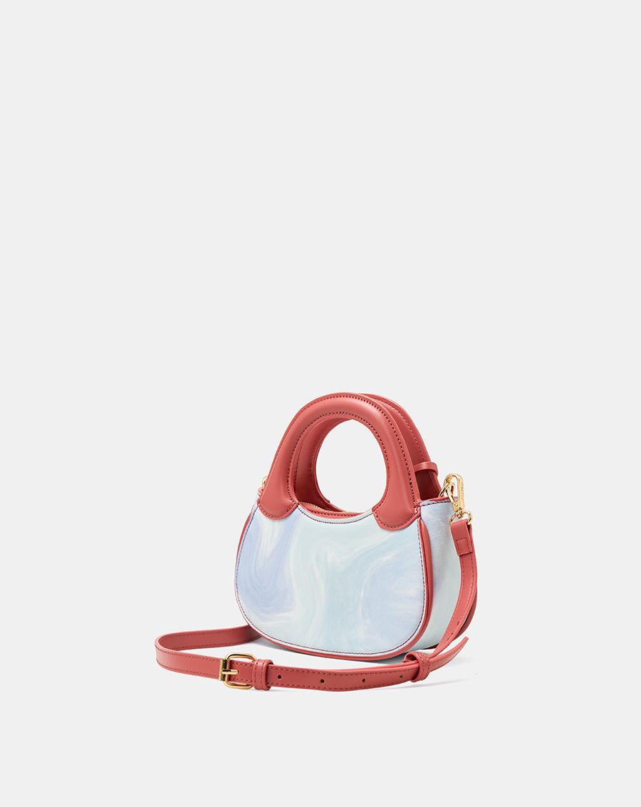 Kiểu dáng túi nhỏ bo viền góc mới lạ, phồi màu bề mặt túi cùng quai cầm tay cực kì nổi bật