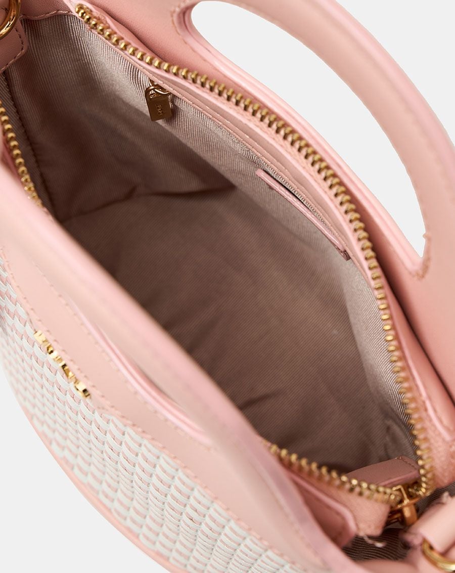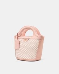 Bề mặt túi với họa tiết đan lát phối với charm emboss logo icon tạo nên sự nổi bật và khác biệt