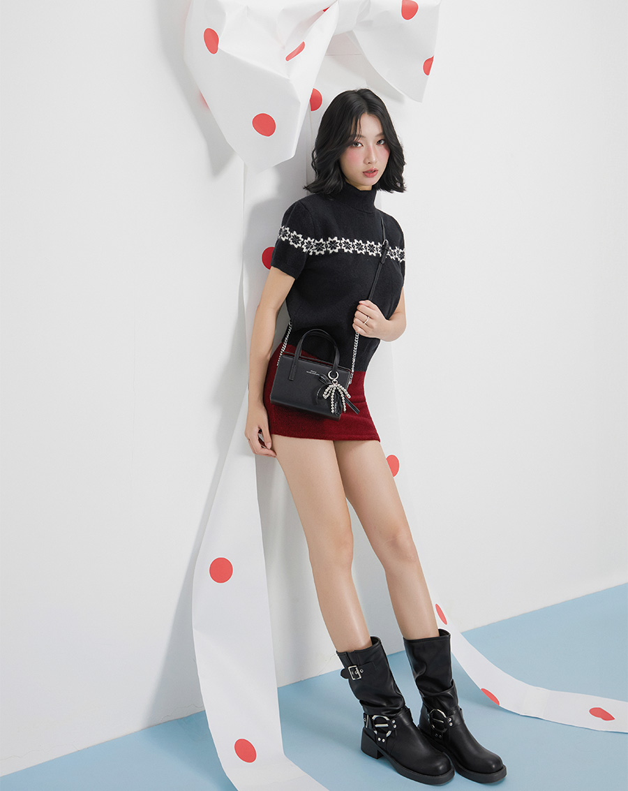 Túi Xách Nhỏ Dạng Hộp Trang Trí Charm Nơ nữ tính, hiện đại