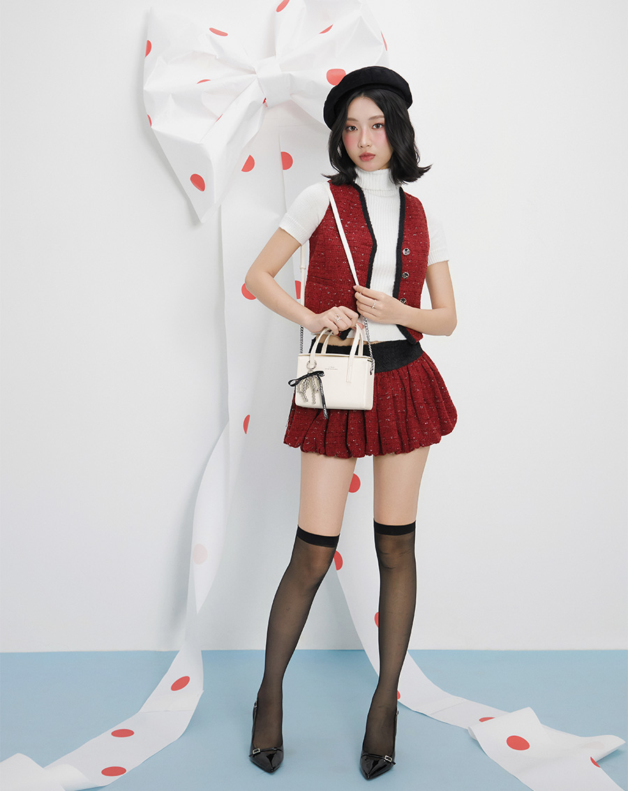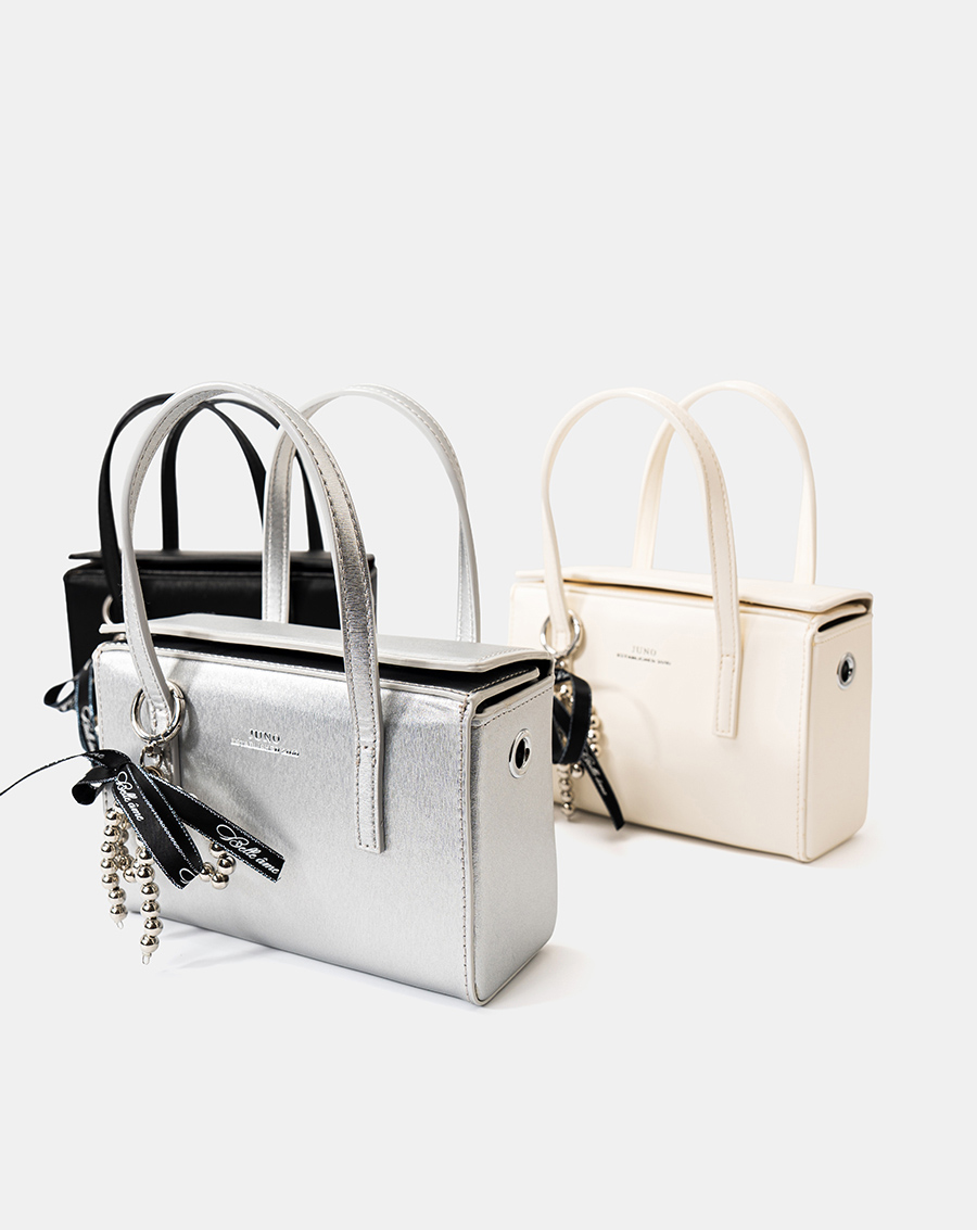 Form túi dạng hộp mới lạ, túi có quai cầm tay phối charm cực kì nổi bật