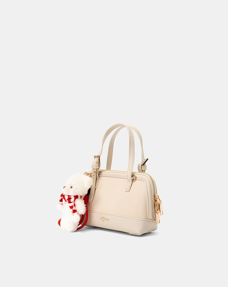 Form túi mới lạ bo tròn, túi có quai cầm tay phối charm cực kì dễ thương, nổi bật