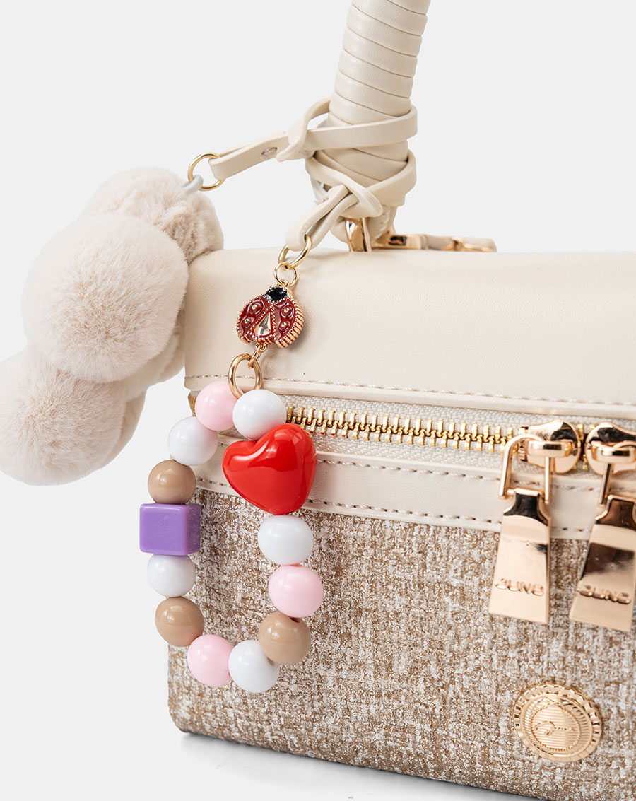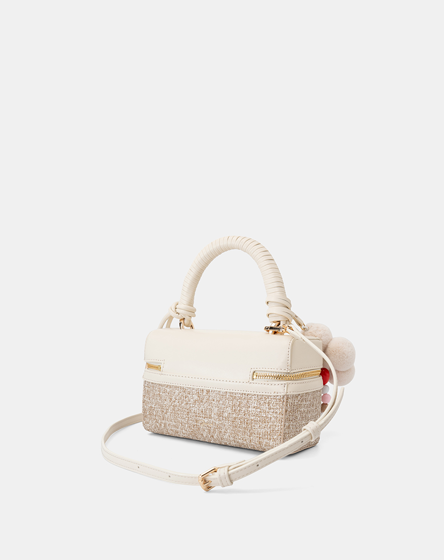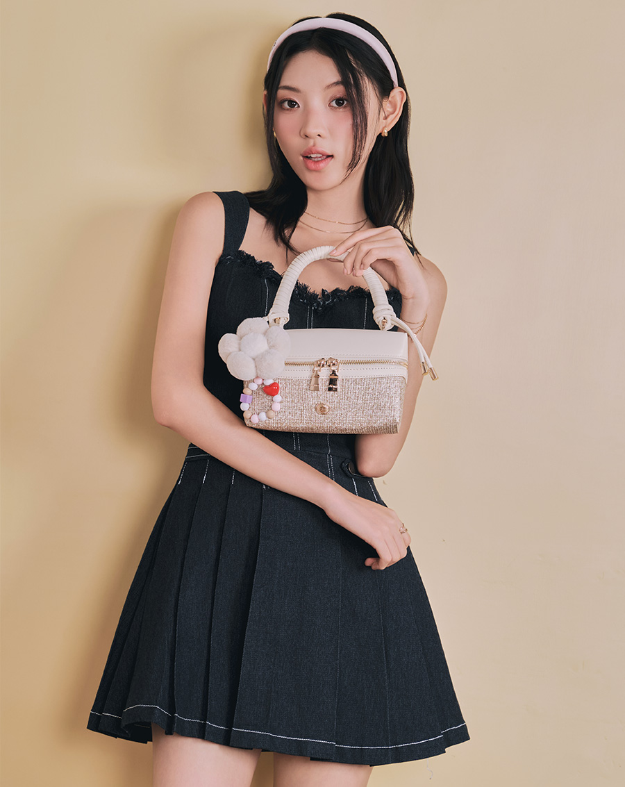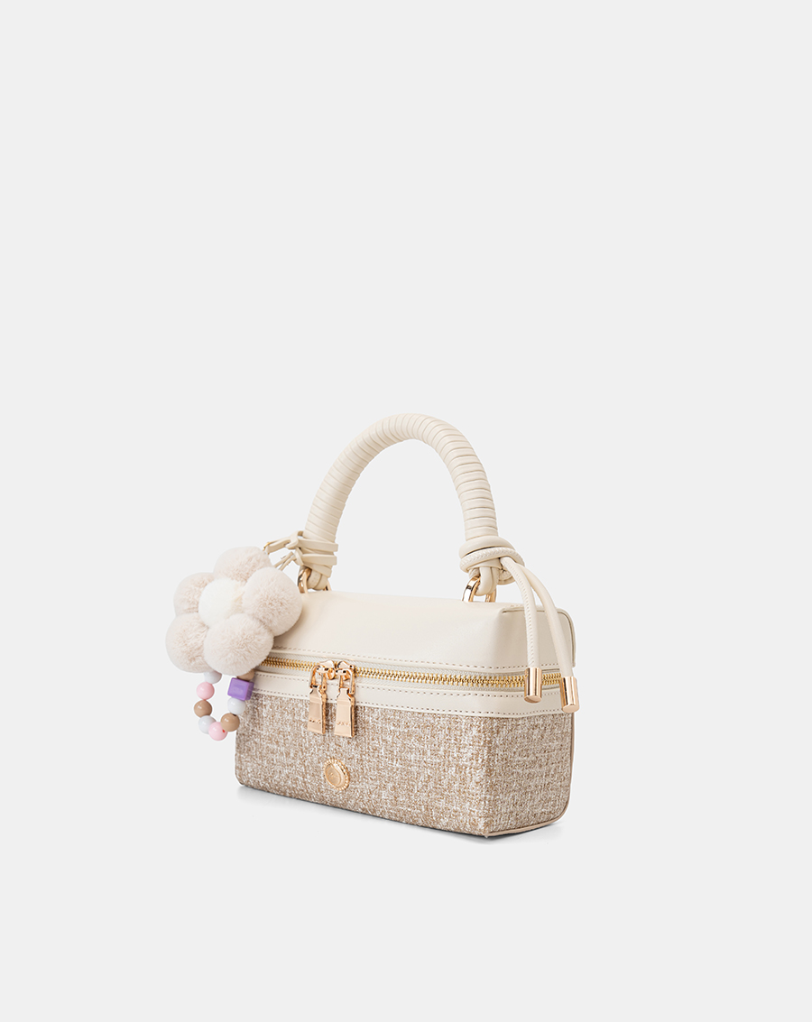 Form túi dạng hộp mới lạ, cứng cáp phối charm hoa xinh xắn