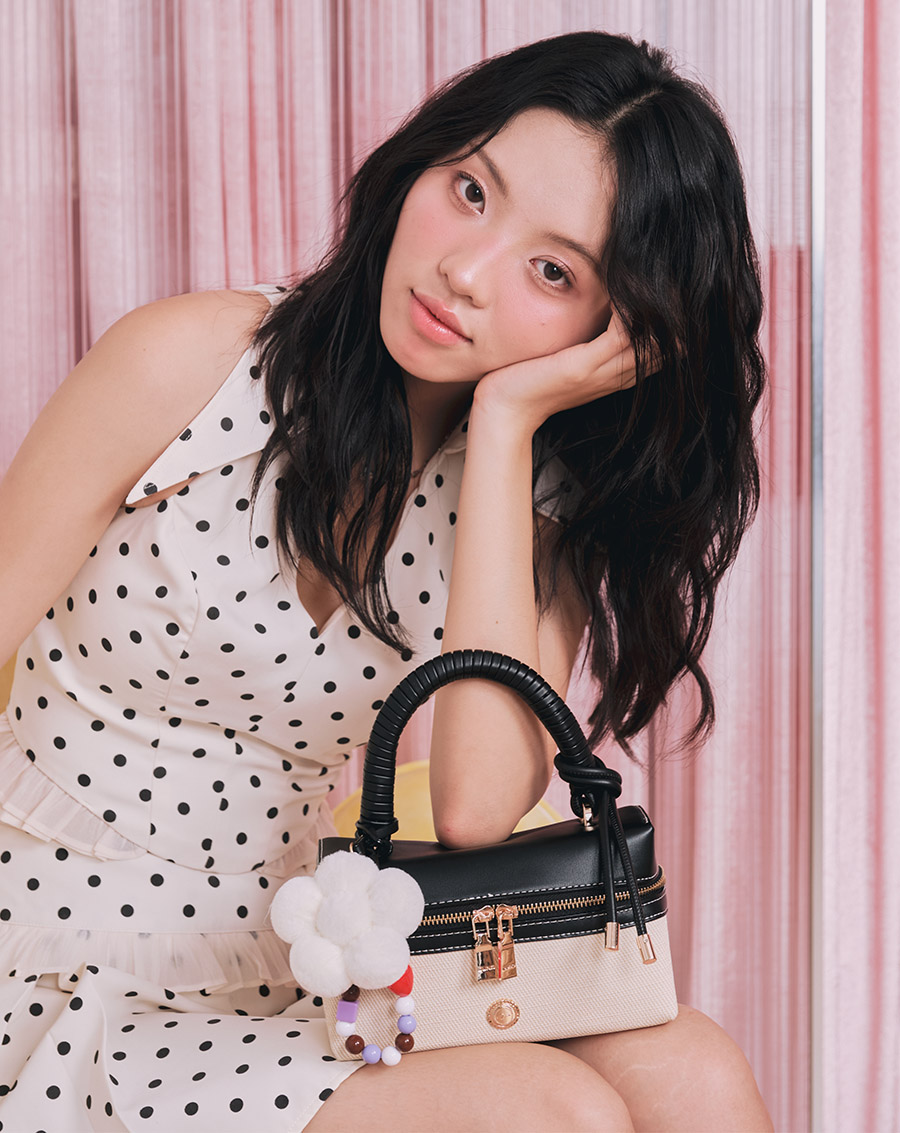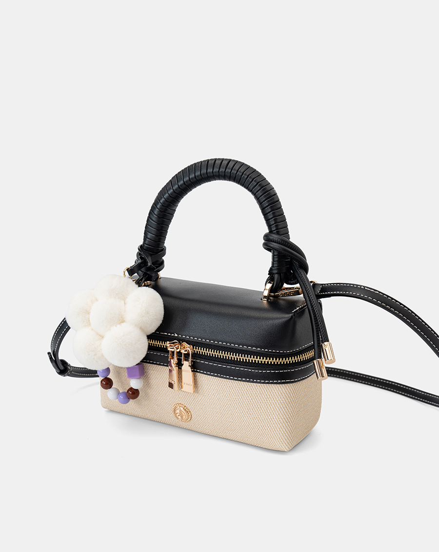 Form túi dạng hộp mới lạ, cứng cáp phối charm hoa xinh xắn