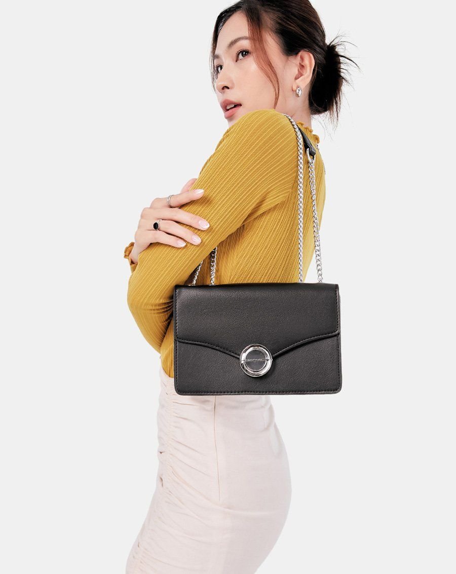 Túi xách nhỏ nắp gập gắn khoá trang trí đơn giản, tinh tế