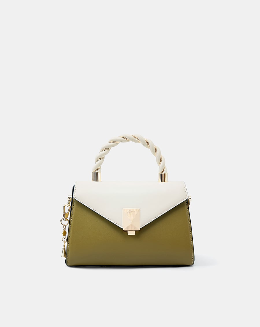 Túi Xách Nhỏ Tay Cầm Xoắn Phối Charm Trang Trí với thiết kế tay cầm khối chất liệu da xoắn