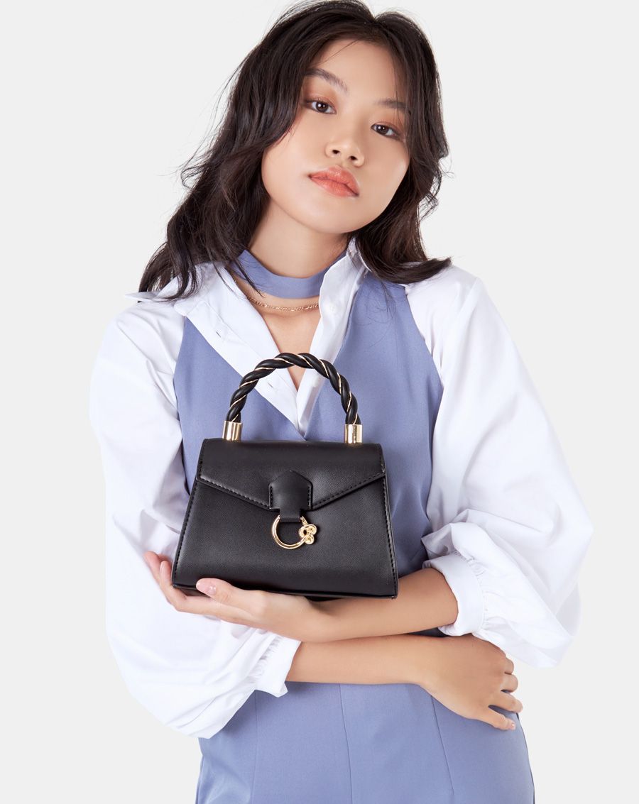 Túi xách nhỏ top handle trang trí khóa knotted thanh lịch, sang trọng