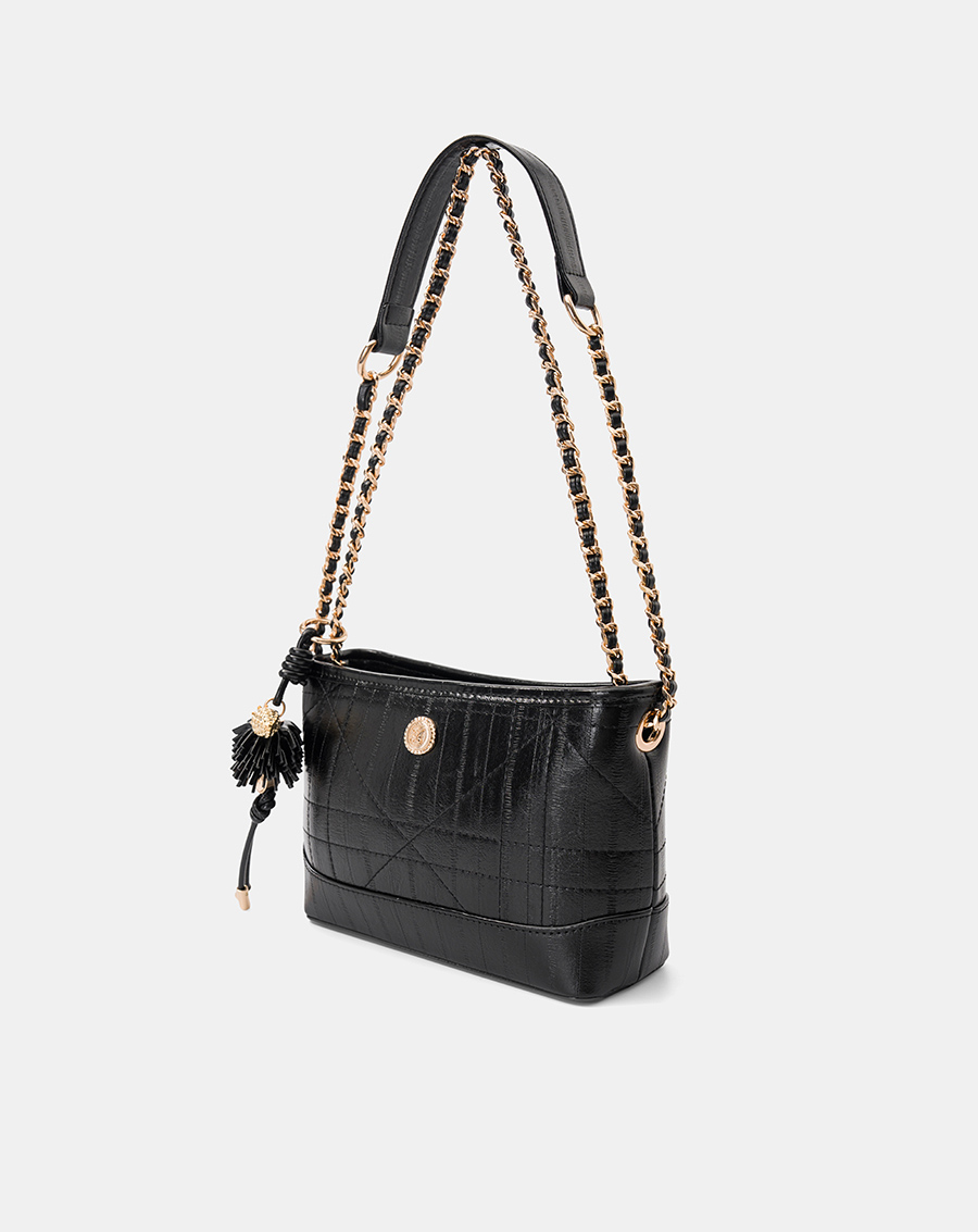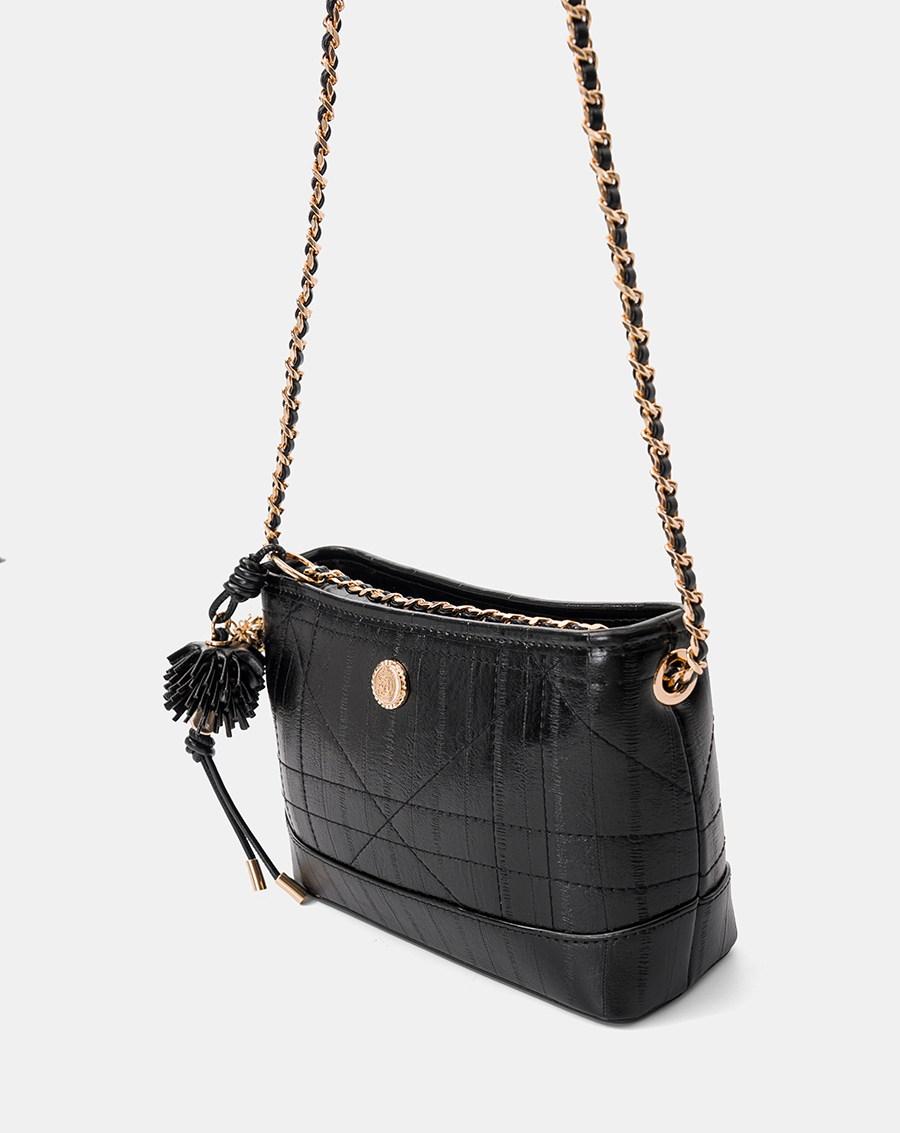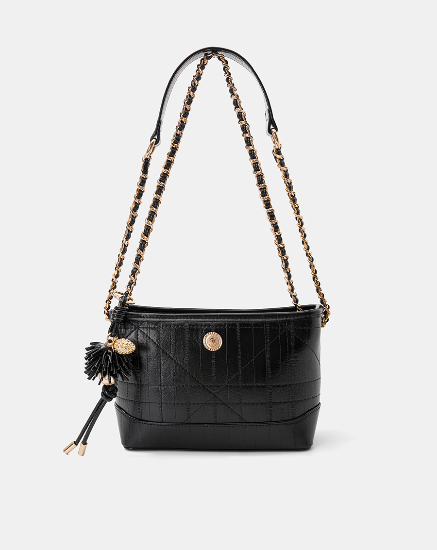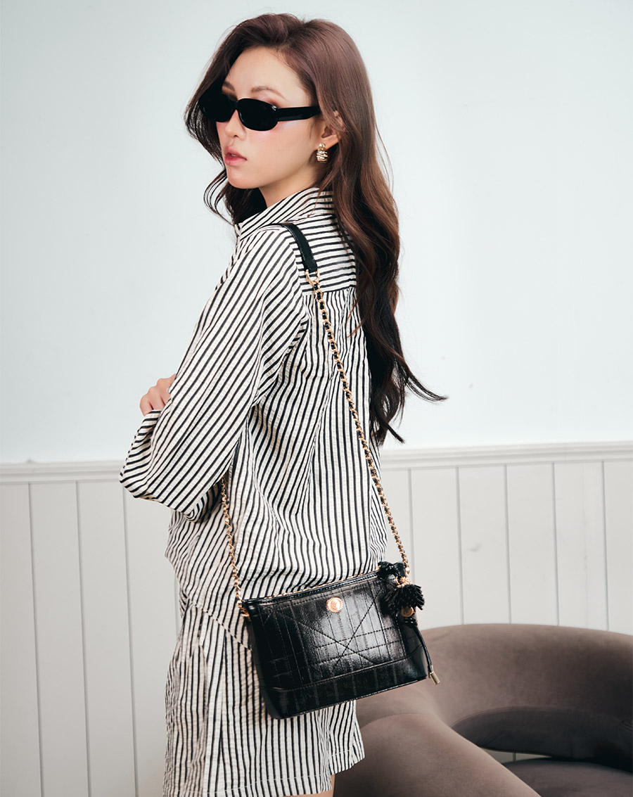 Form túi dáng mềm, phối 2 quai đeo kim loại cùng charm mới lạ và nữ tính