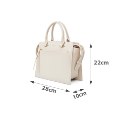 Túi thiết kế đơn giản, quai kéo cách điệu bo 2 bên, bên ngoài phối ngăn nhỏ tiện dụng