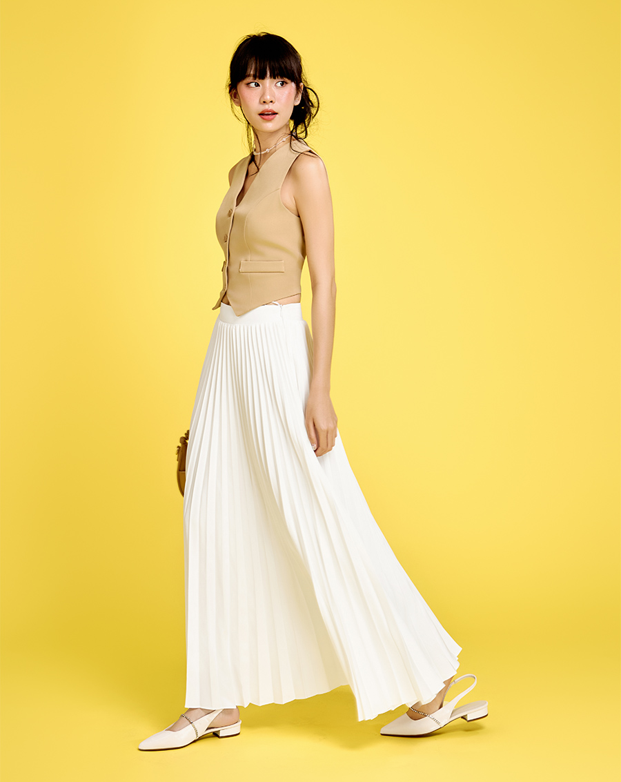 - Váy midi dập ly nữ tính, dễ phối đồ