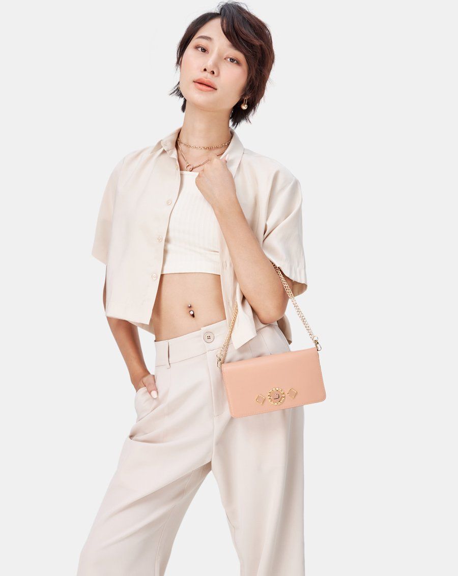 Ví cầm tay thiết kế nữ tính đính khoá trang trí nổi bật, tạo điểm nhấn