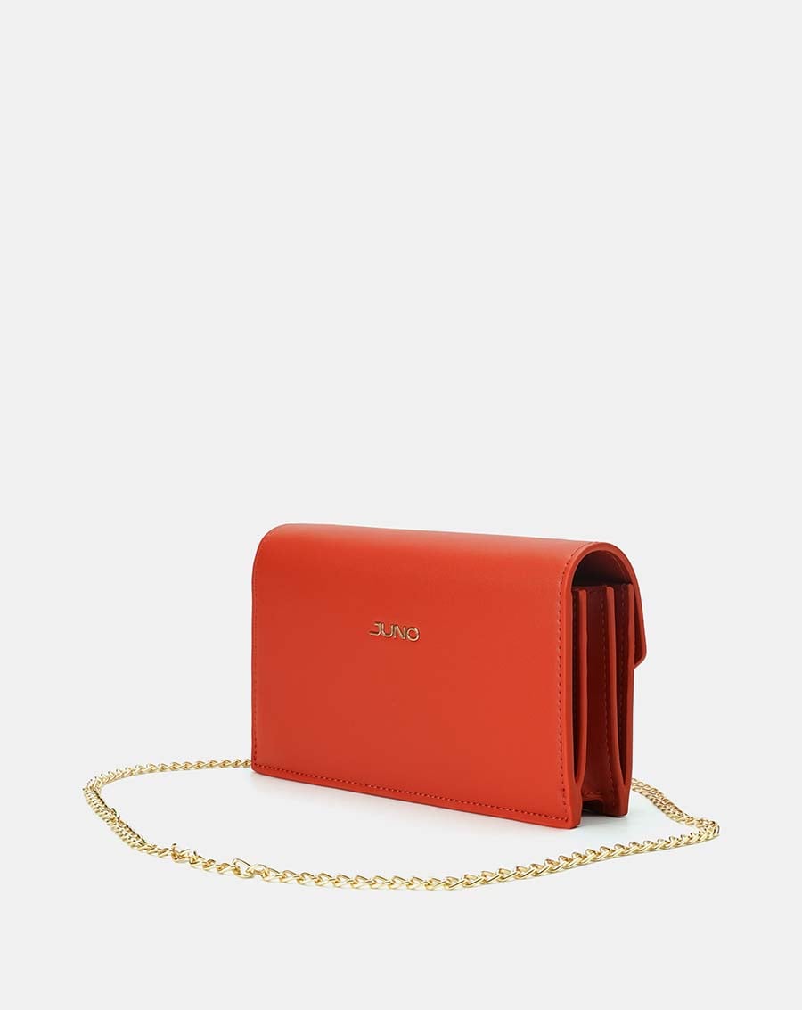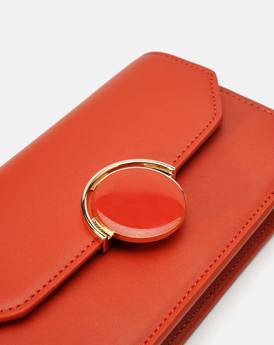 Điểm nhấn khóa kim loại vân đá sang trọng, hiện đại. Bên trong có nhiều ngăn kèm khóa kéo tiện dụng. Ví kèm quai xích mảnh đeo dài để làm ví đi tiệc