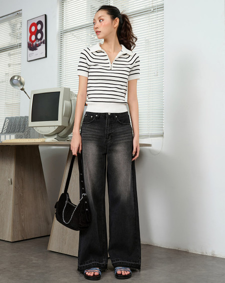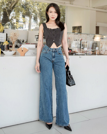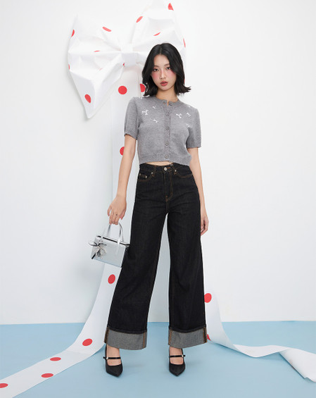 Quần jean lai tua rua túi thêu chữ "Junoclub"